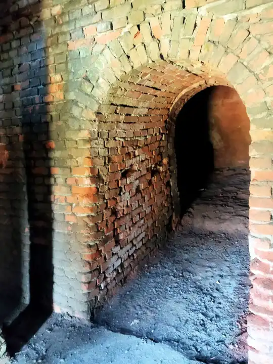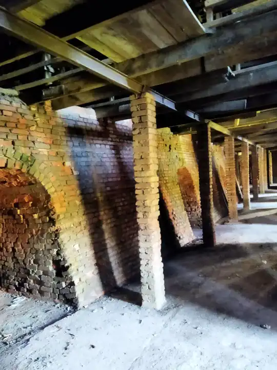 Konstrukcja: Piec kręgowy Hoffmana do wypalania cegieł, komin, budynek administracyjny, wiata