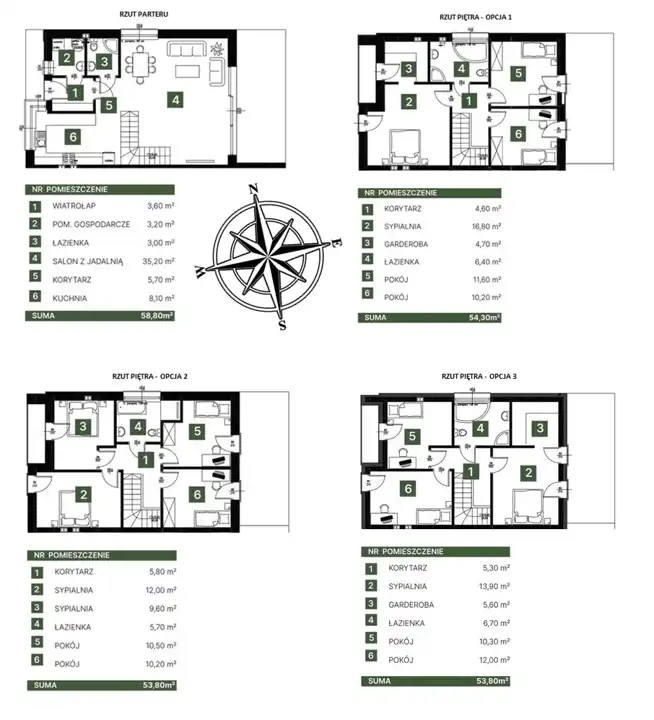 Piętro: Istnieje możliwość wyboru jednej z trzech wersji układu pomieszczeń na piętrze: