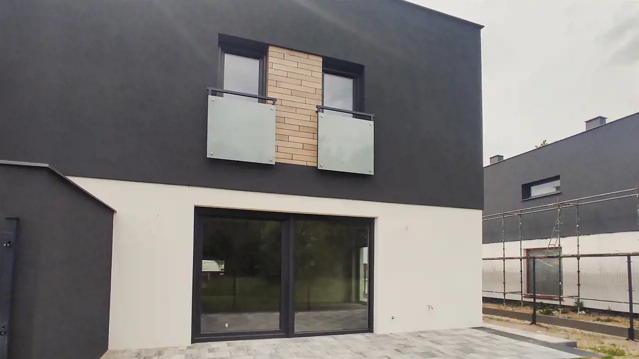 Okna 3-szybowe PCV, elektryczne rolety zewnętrzne pod kolor okien, system pompy ciepła oraz ogrzewanie podłogowe w całym domu.