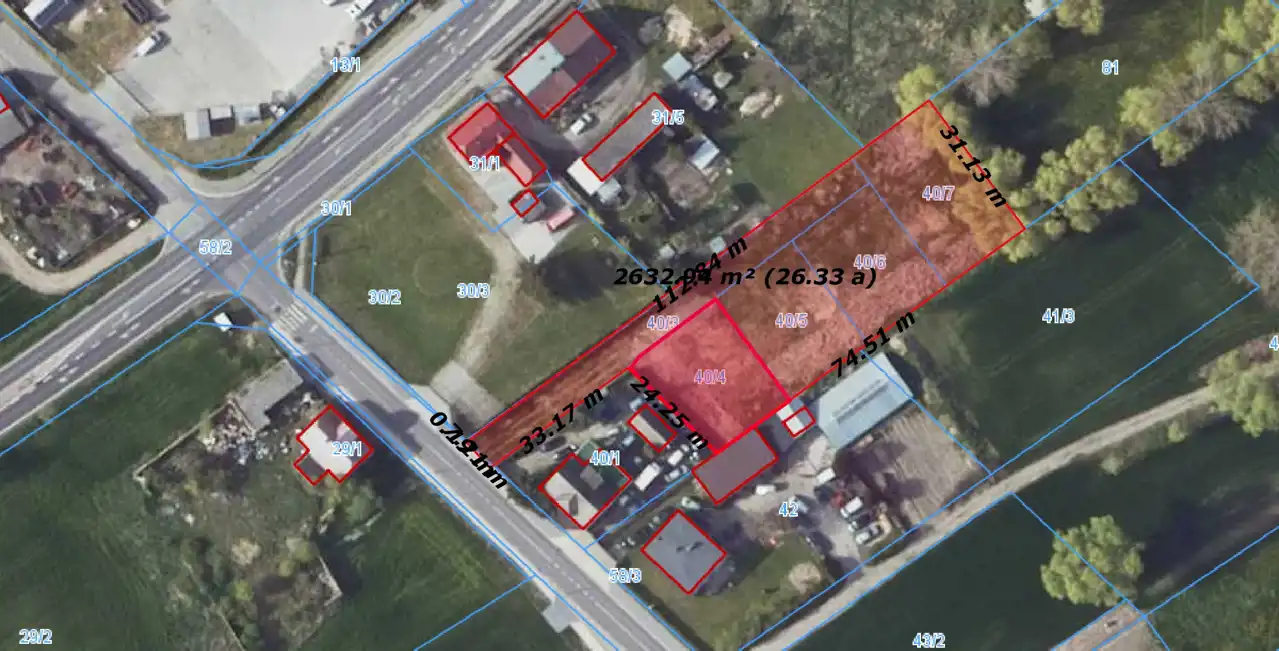Dojazd: zjazd z głównej asfaltowej drogi, działka z prywatnym wjazdem.