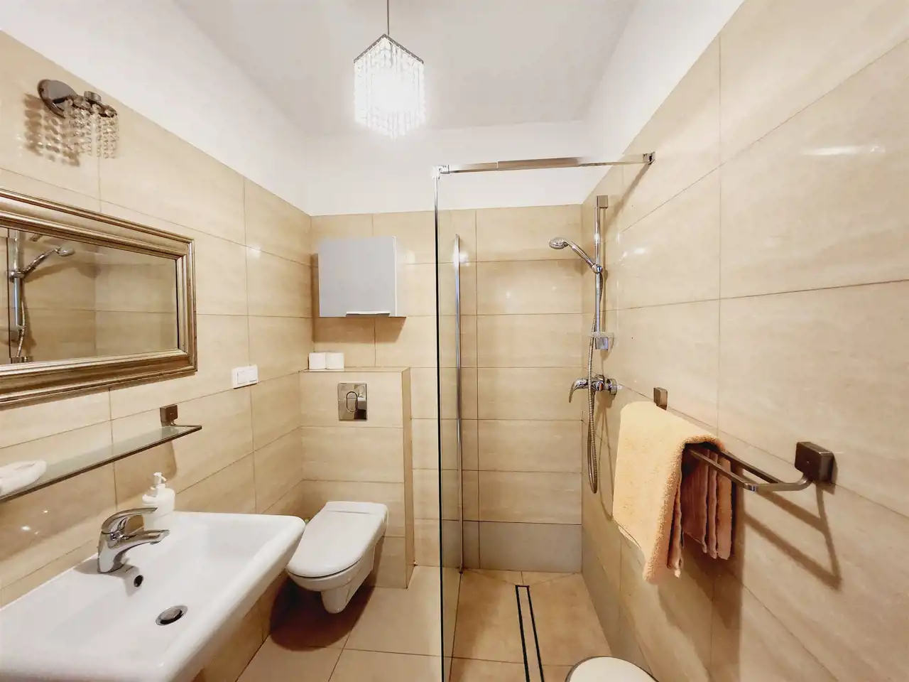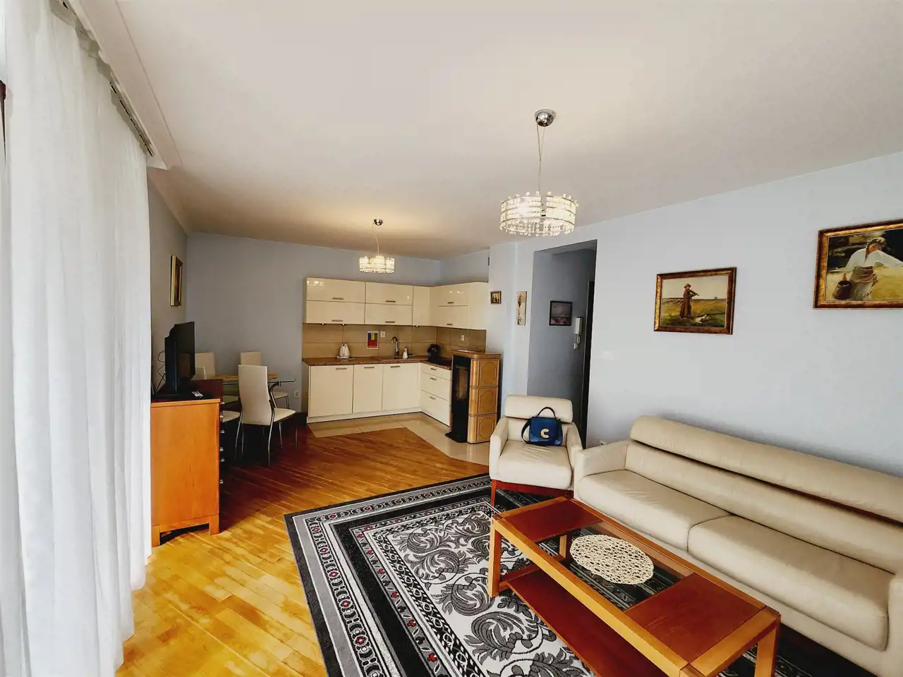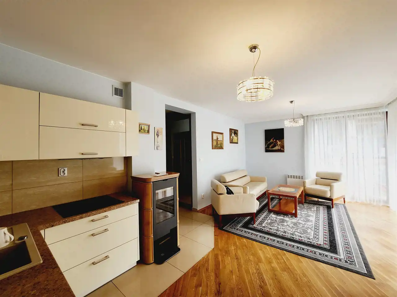 Apartament w pełni wykończony i wyposażony, nie wymaga nakładów finansowych, składa się z: