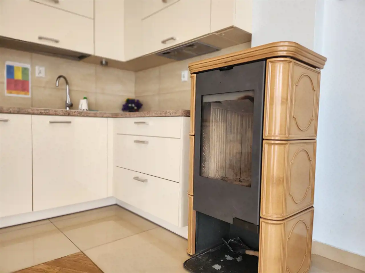 Ogrzewanie elektryczne oraz kominek, ciepła woda bojler.