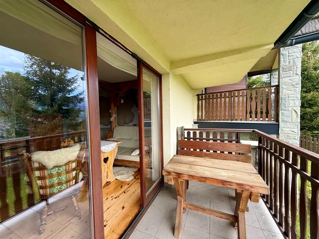 Na sprzedaż wyjątkowy apartament urządzony w stylu góralskim, zlokalizowany w spokojnej, malowniczej okolicy. Przestronny balkon oferuje zachwycający widok na panoramę Tatr, który zapiera dech o każdej porze roku.