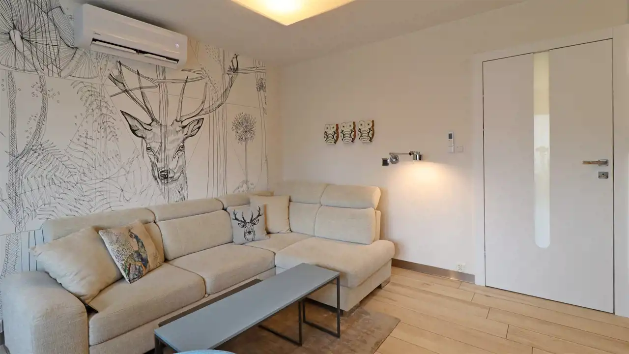 Apartament jest kompletnie umeblowany i wyposażony w sprzęt RTV oraz AGD.