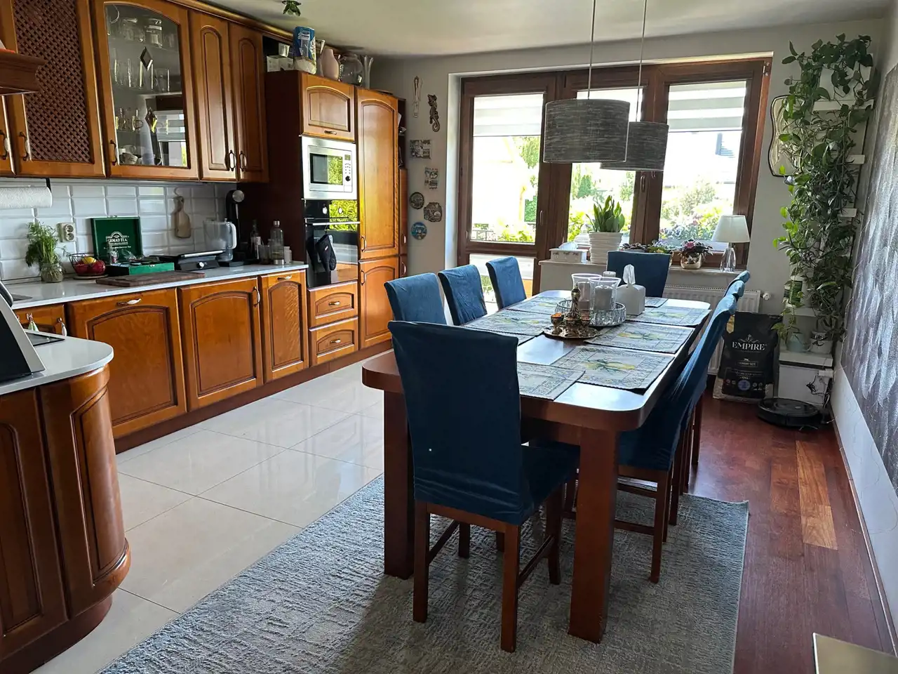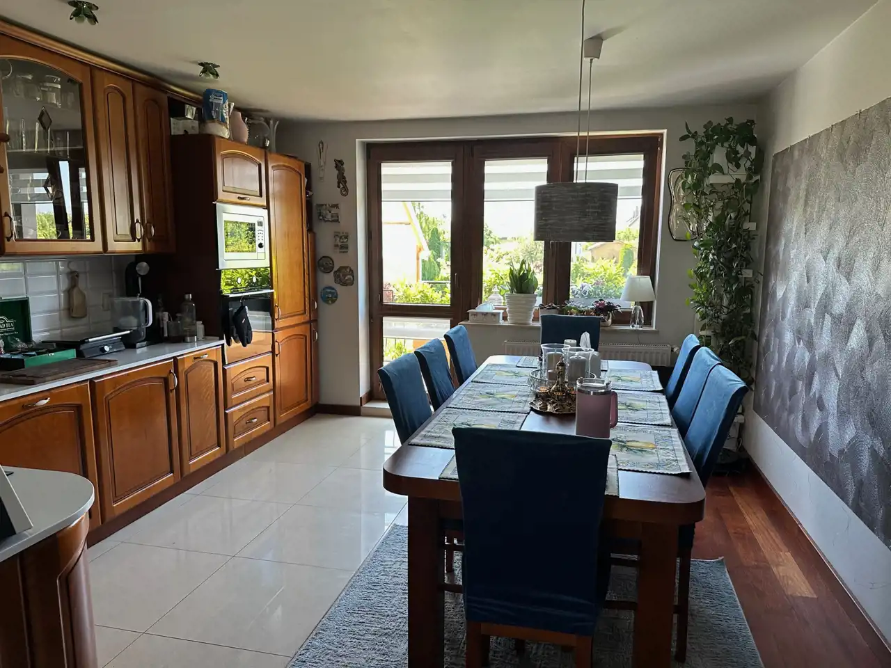 *ogromna kuchnia z jadalnią z dostępem do balkonu