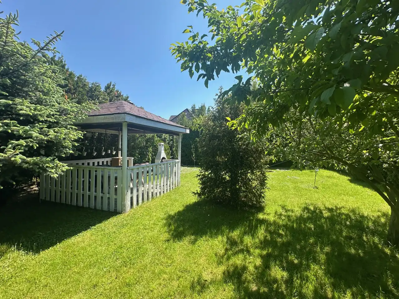 Zadbany OGRÓD z murowanym grillem, dużą piękną altaną, z miejscem na ognisko, dużo drzew owocowych i zadbana trawa. Miejsce idealne do relaksu.