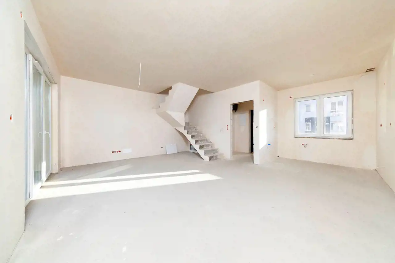 Mieszkanie dwupoziomowe w zabudowie szeregowej - brak klatek schodowych.