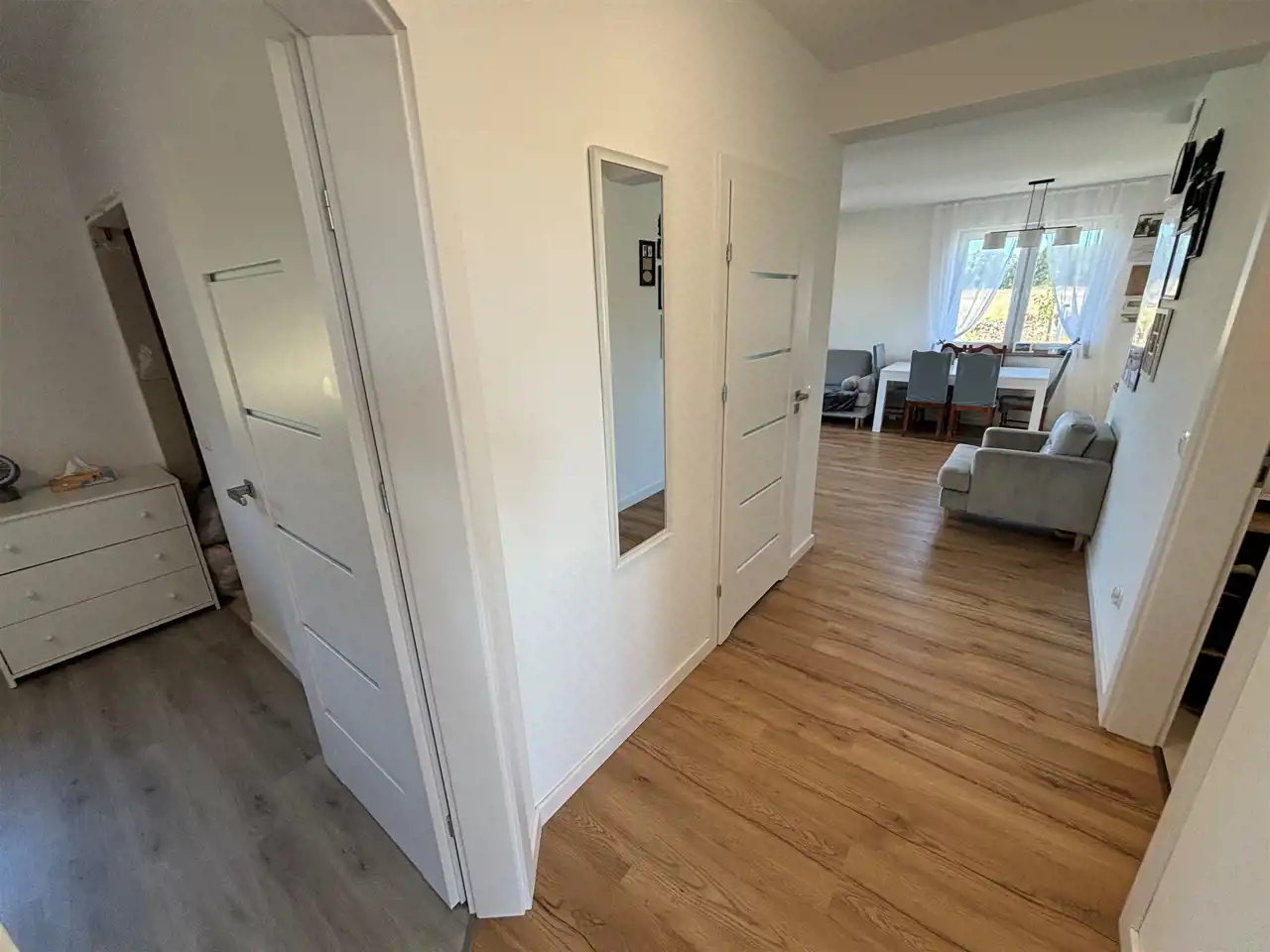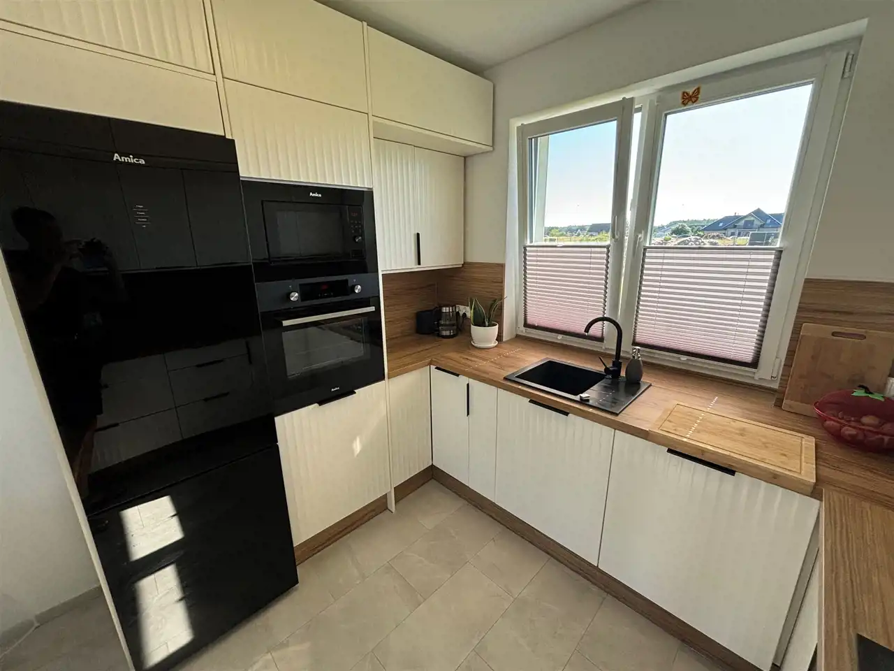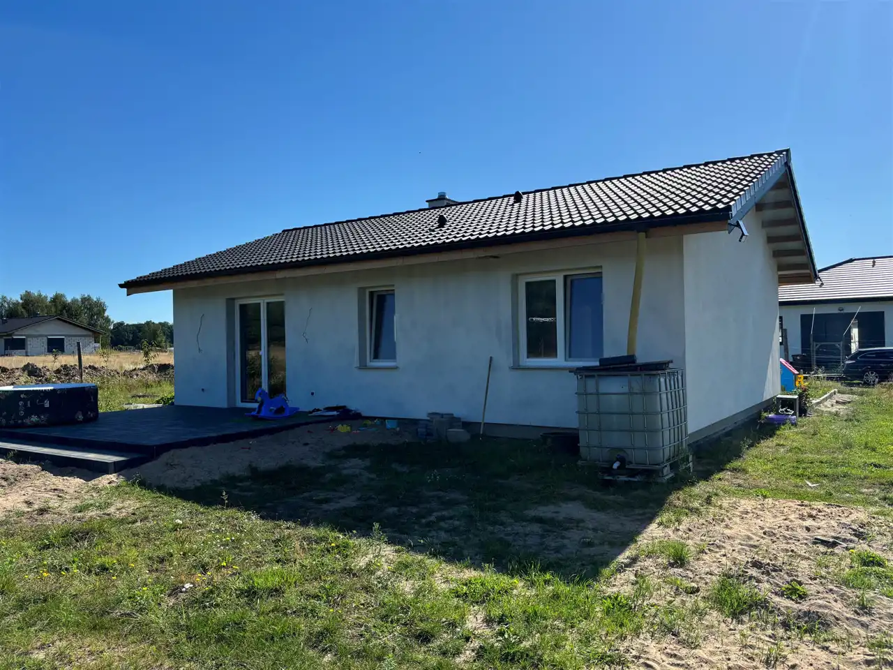 Dom przy ul. Bursztynowej, Os. Drzewice. Powierzchnia użytkowa domu 68,15 m2. Powierzchnia działki 1146 m2. Budynek mieści salon z aneksem kuchennym i wyjściem na taras, 2 sypialnie, łazienkę, kotłownię (budynek ogrzewany jest pompą ciepła), korytarz i wiatrołap. Meble kuchenne oraz wbudowane na stałe urządzenia pozostają na wyposażeniu domu. Obecnie dom jest wyposażony w szambo, ale na 2025 roku planowane jest przyłączenie budynku do kanalizacji miejskiej. Kupujący nie płaci prowizji dla biura nieruchomości. Wynagrodzenie biura nieruchomości w całości pokrywa sprzedający.