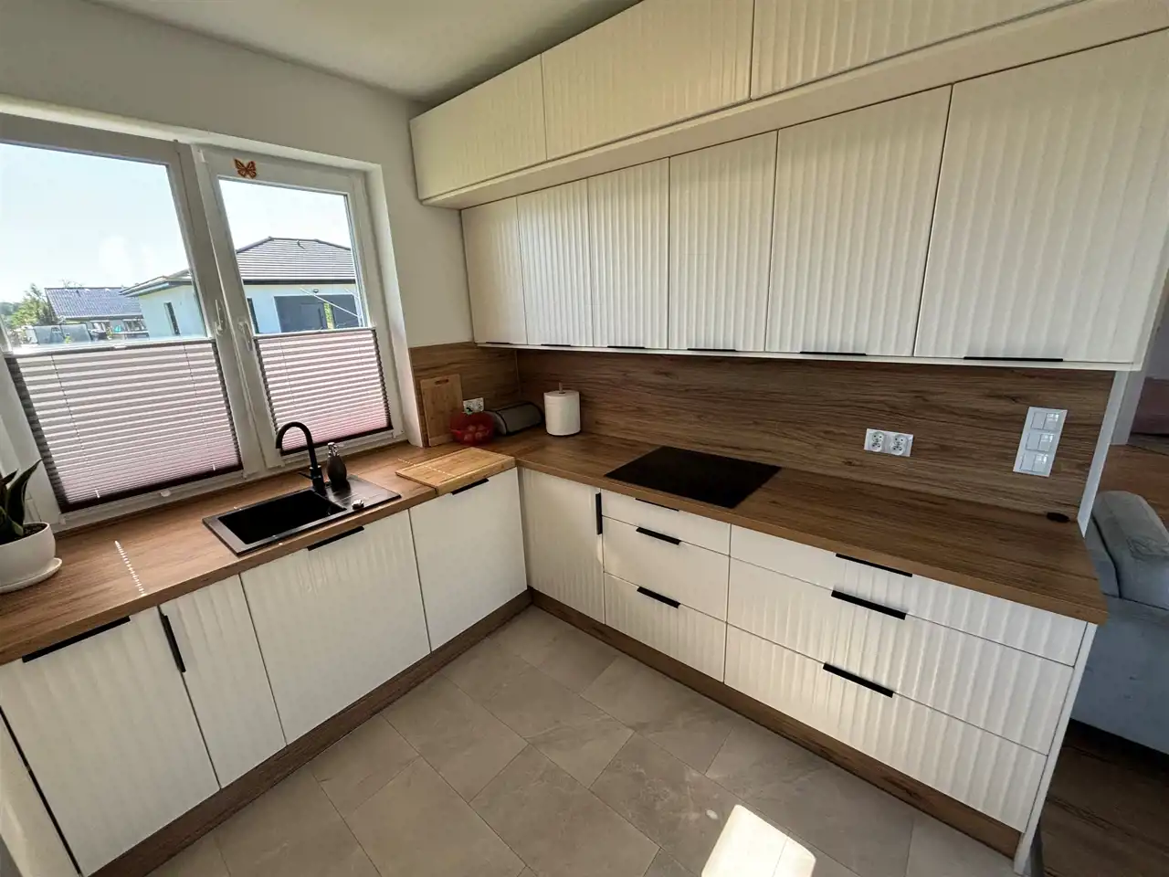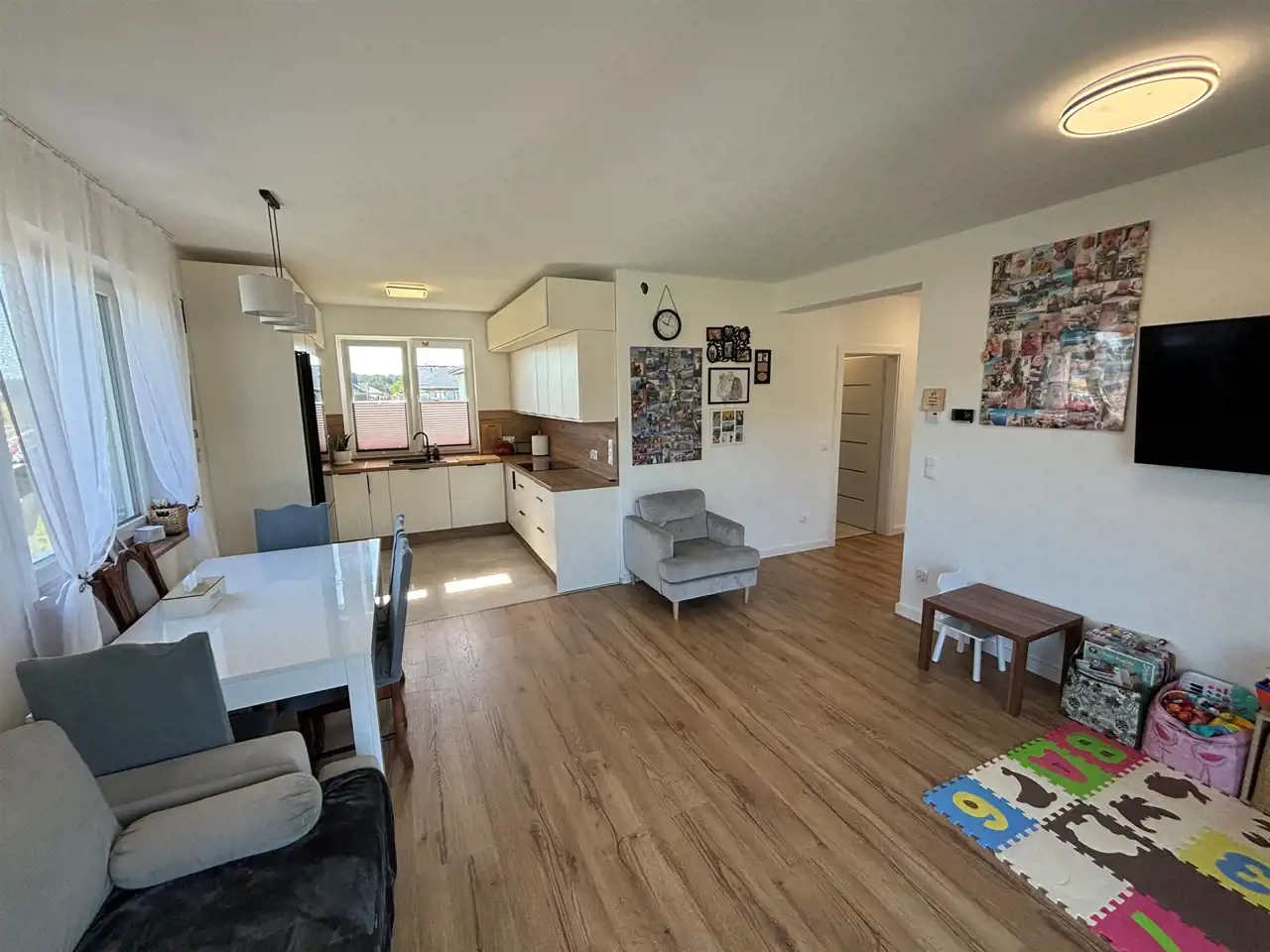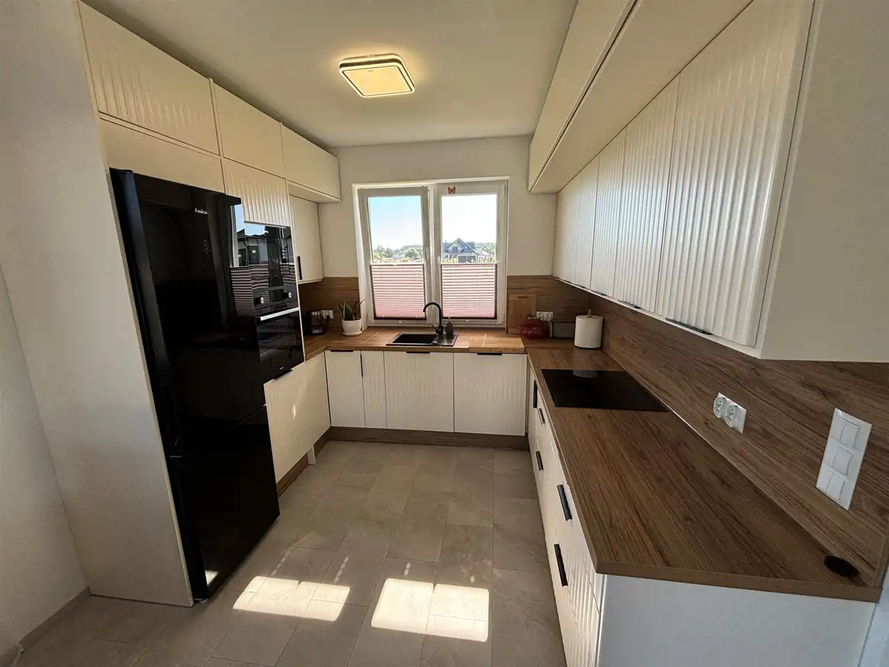 Dom przy ul. Bursztynowej, Os. Drzewice. Powierzchnia użytkowa domu 68,15 m2. Powierzchnia działki 1146 m2. Budynek mieści salon z aneksem kuchennym i wyjściem na taras, 2 sypialnie, łazienkę, kotłownię (budynek ogrzewany jest pompą ciepła), korytarz i wiatrołap. Meble kuchenne oraz wbudowane na stałe urządzenia pozostają na wyposażeniu domu. Obecnie dom jest wyposażony w szambo, ale na 2025 roku planowane jest przyłączenie budynku do kanalizacji miejskiej. Kupujący nie płaci prowizji dla biura nieruchomości. Wynagrodzenie biura nieruchomości w całości pokrywa sprzedający.