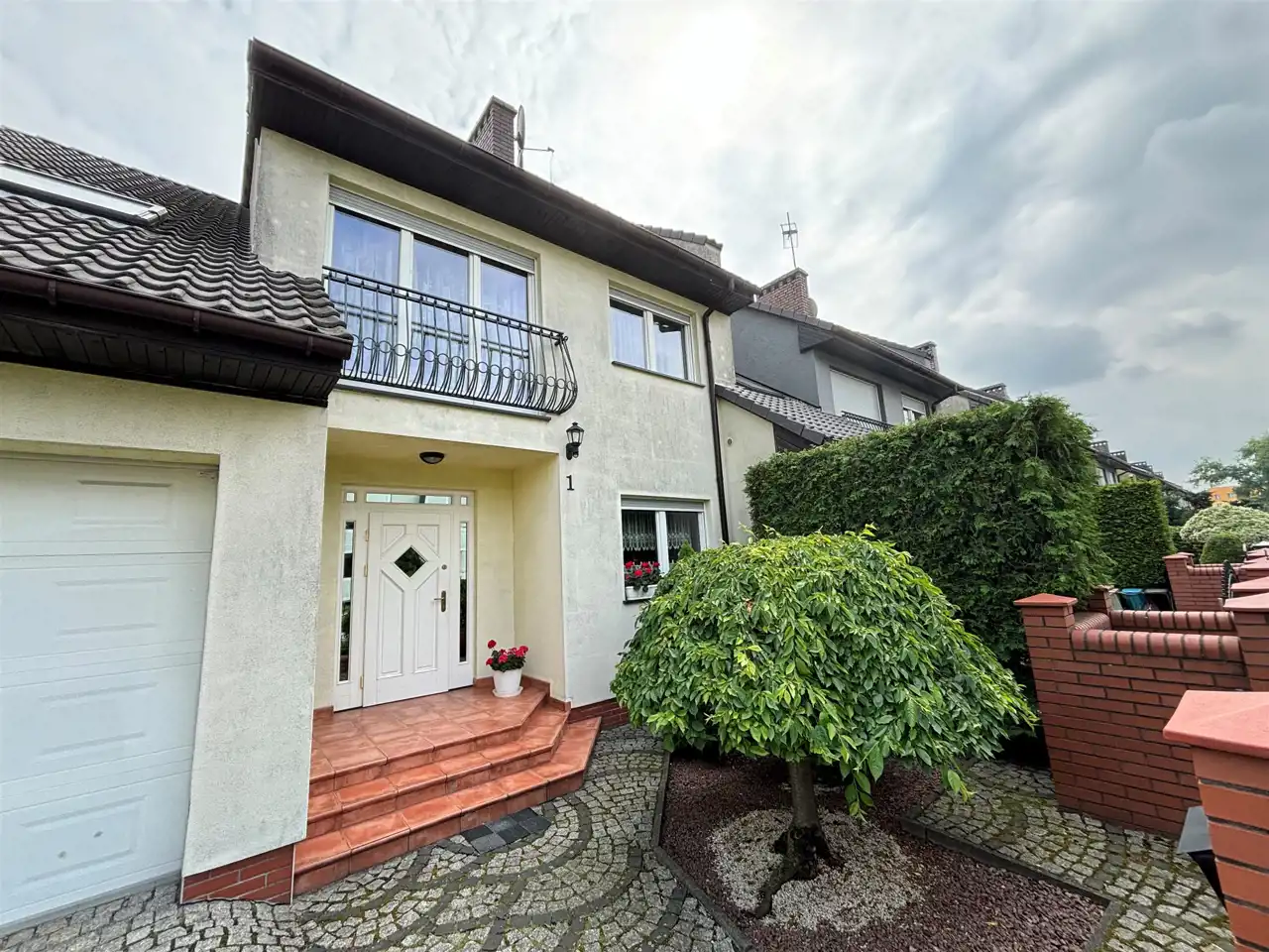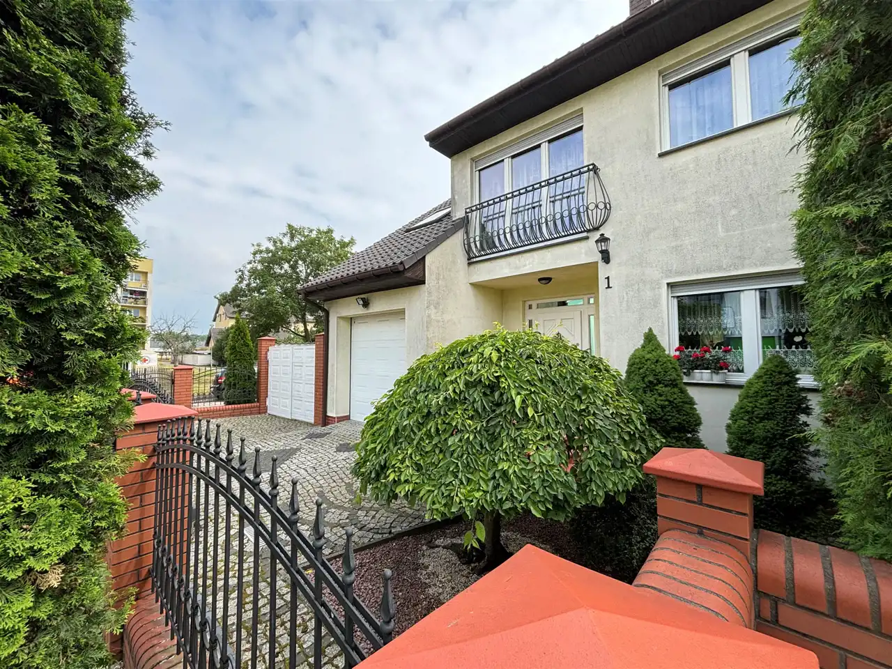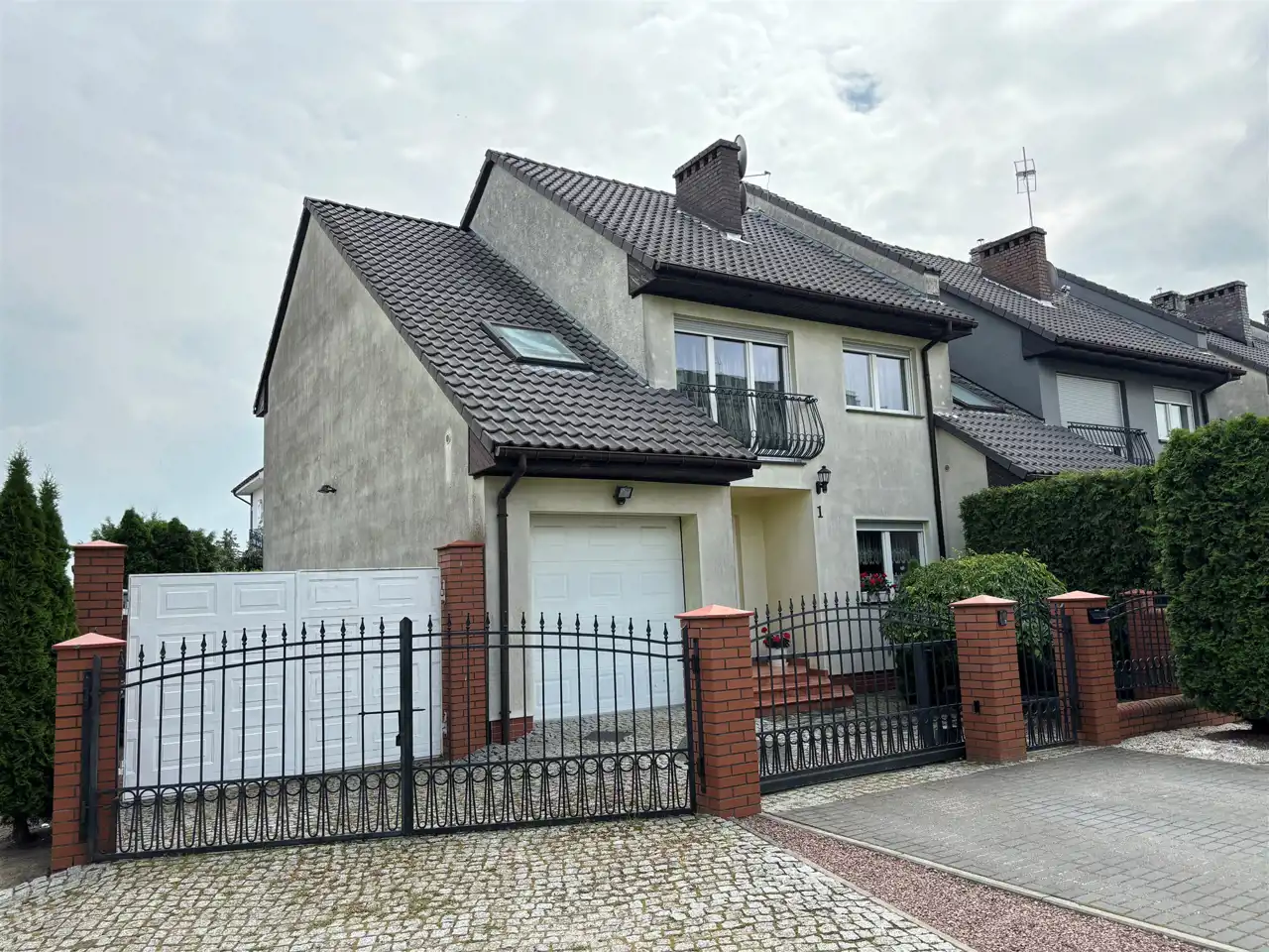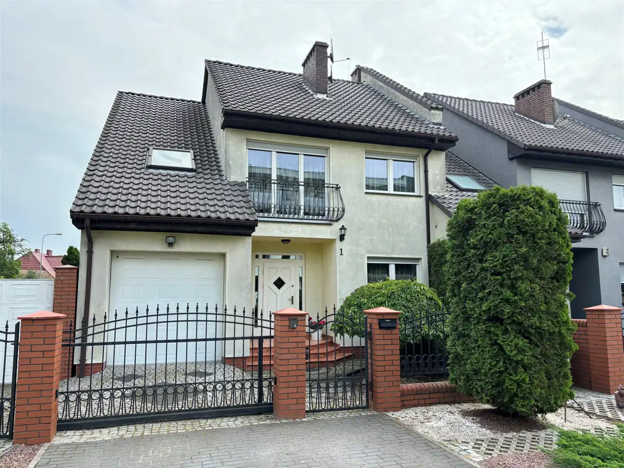 Dom w zabudowie szeregowej przy ul. Turkusowej. Na parterze budynku znajdują się: salon z aneksem kuchennym, przedpokój, toaleta i garaż. Pietro budynku mieści dwie sypialnie z wyjściem na balkon, pokój, obszerną łazienkę, i schowek podręczny. Na poddaszu znajduje się obszerny pokój. Budynek wykonany z cegły kratówki, ocieplony styropianem (10 cm) pokryty dachówką cementową. Stolarka drzwiowa i okienna (wewnętrzna i zewnętrzna), a także schody bukowe. Podłogi sosnowe. Żaluzje na wszystkich oknach elektrycznie. Ogrzewanie gazowe. W kuchni, toalecie i łazience ogrzewanie podłogowe. Na wyposażeniu domu pozostają meble i urządzenia kuchenne widoczne na zdjęciach. Kupujący nie płaci prowizji dla biura nieruchomości. Wynagrodzenie biura nieruchomości w całości pokrywa sprzedający.