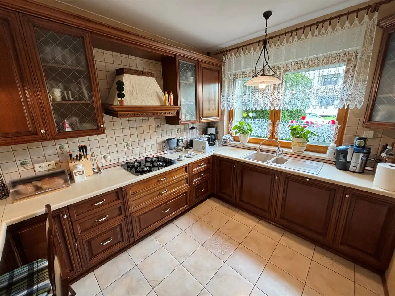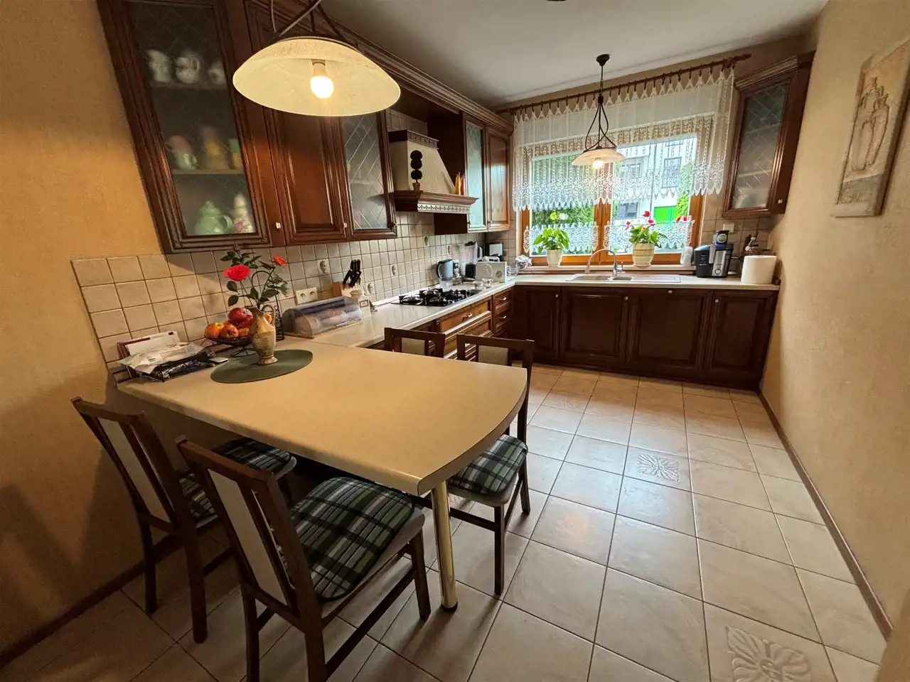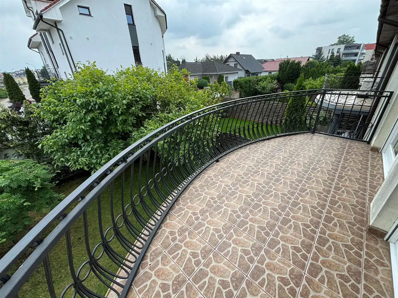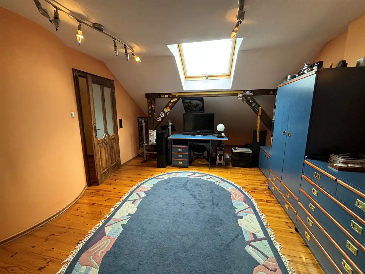 Dom w zabudowie szeregowej przy ul. Turkusowej. Na parterze budynku znajdują się: salon z aneksem kuchennym, przedpokój, toaleta i garaż. Pietro budynku mieści dwie sypialnie z wyjściem na balkon, pokój, obszerną łazienkę, i schowek podręczny. Na poddaszu znajduje się obszerny pokój. Budynek wykonany z cegły kratówki, ocieplony styropianem (10 cm) pokryty dachówką cementową. Stolarka drzwiowa i okienna (wewnętrzna i zewnętrzna), a także schody bukowe. Podłogi sosnowe. Żaluzje na wszystkich oknach elektrycznie. Ogrzewanie gazowe. W kuchni, toalecie i łazience ogrzewanie podłogowe. Na wyposażeniu domu pozostają meble i urządzenia kuchenne widoczne na zdjęciach. Kupujący nie płaci prowizji dla biura nieruchomości. Wynagrodzenie biura nieruchomości w całości pokrywa sprzedający.