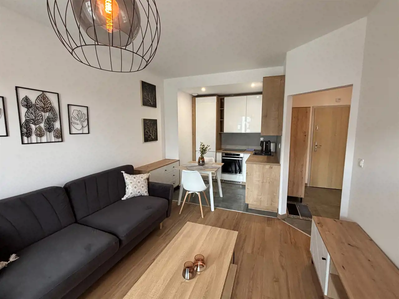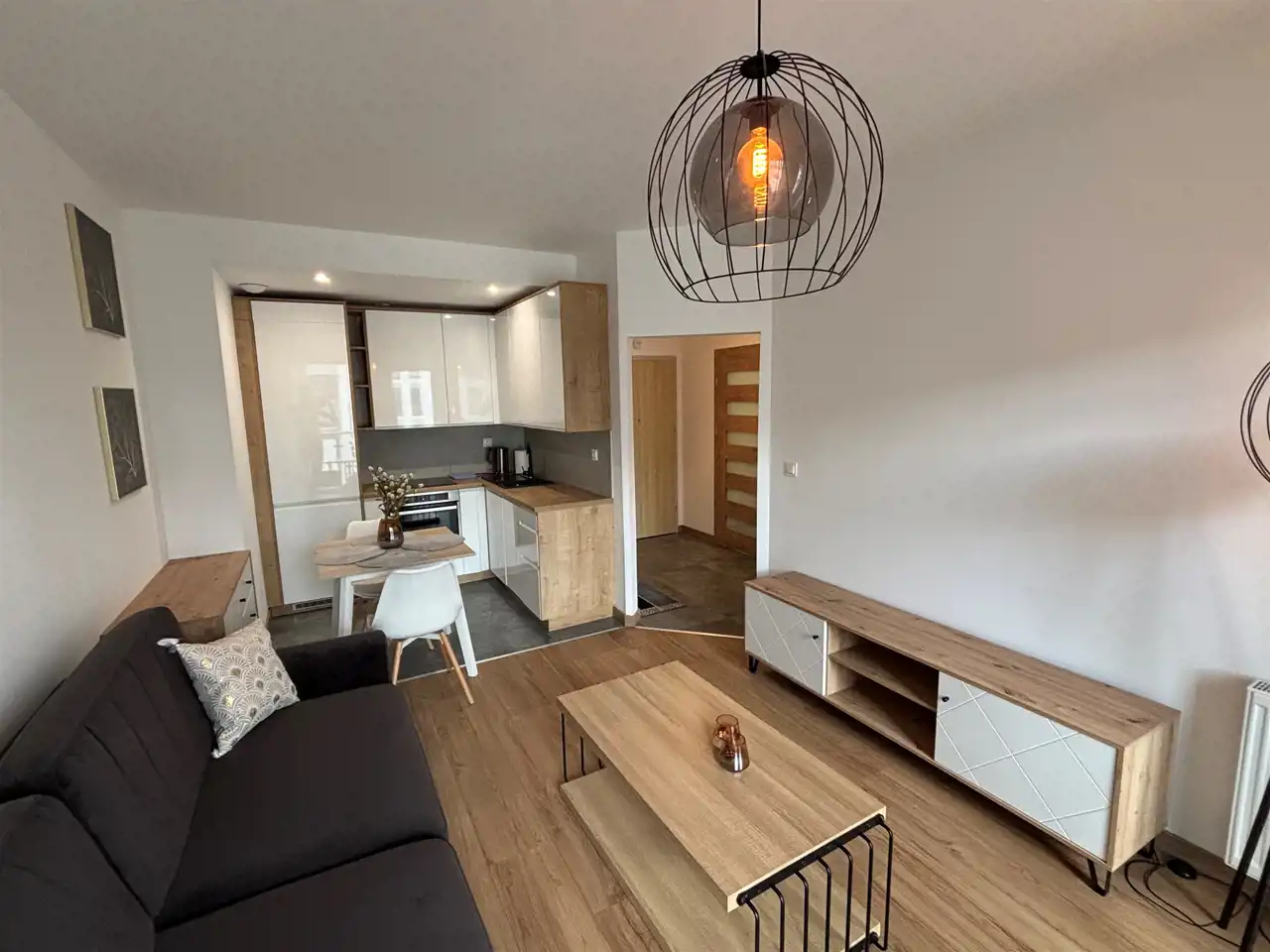 Dwupokojowe mieszkanie o powierzchni 43,06 m2 przy ul. Kwiatowej. Mieszkanie składa się z salonu z aneksem kuchennym (i balkonem), sypialni, przedpokoju i łazienki z WC. Jest w pełni wyposażone i umeblowane. Do mieszkania przynależy piwnica o pow. 2,78 m2. Ogrzewanie i podgrzewanie ciepłej wody z sieci lokalnej. Opłaty eksploatacyjne przy założeniu, że w mieszkaniu na stałe zamieszkuje 1 osoba wynoszą około 700 zł miesięcznie. Najemca nie płaci prowizji dla biura nieruchomości. Wynagrodzenie biura nieruchomości w całości pokrywa Wynajmujący. Mieszkanie będzie dostępne od 01/01/2026 roku.