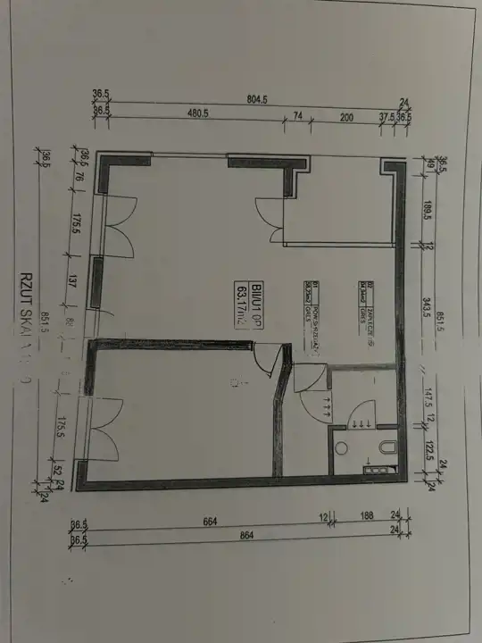 - Układ pomieszczeń: sala sprzedaży, gabinet, zaplecze, łazienka
