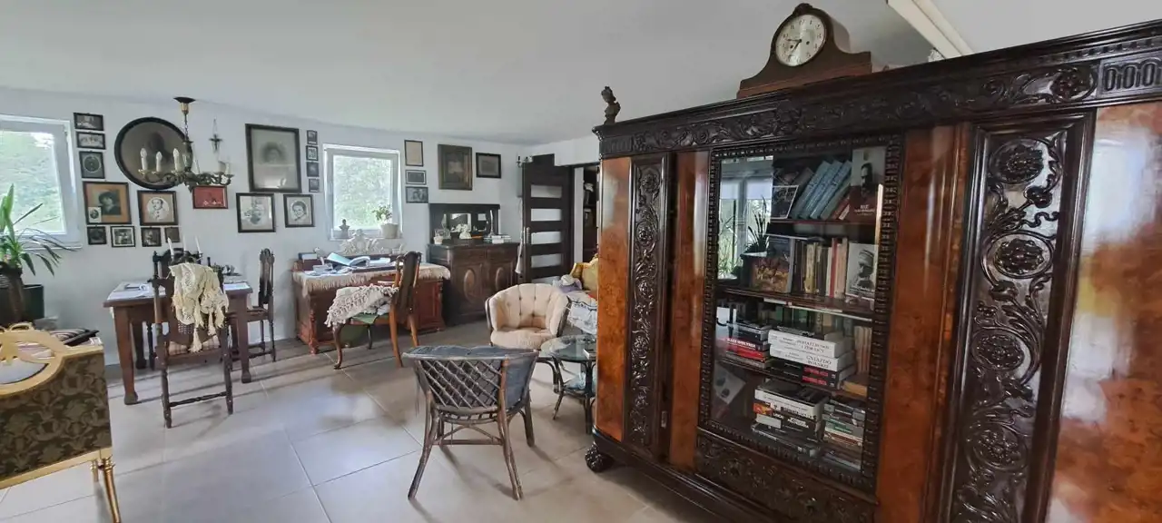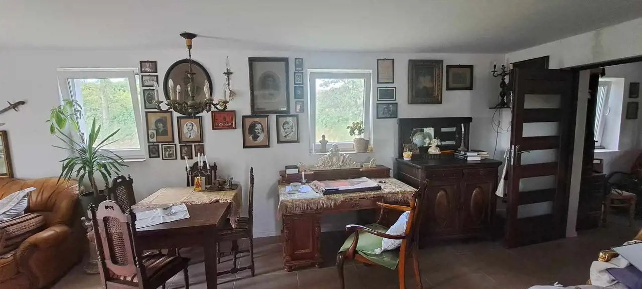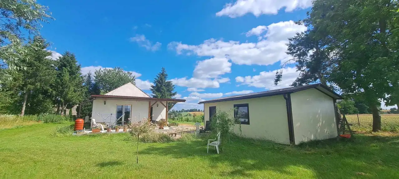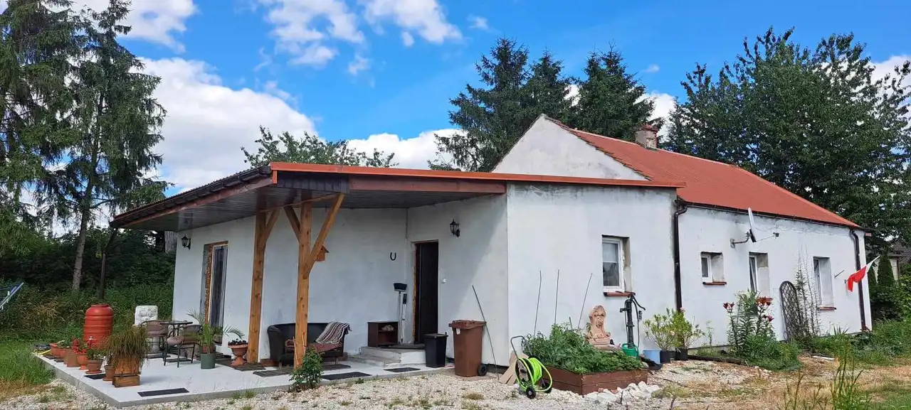 Ten wyjątkowy dom znajduje się w cichej i spokojnej okolicy, z dala od zgiełku i ruchu samochodowego drogi DK 79.Jako ostatni przy ślepej drodze asfaltowej o znikomym ruchu .