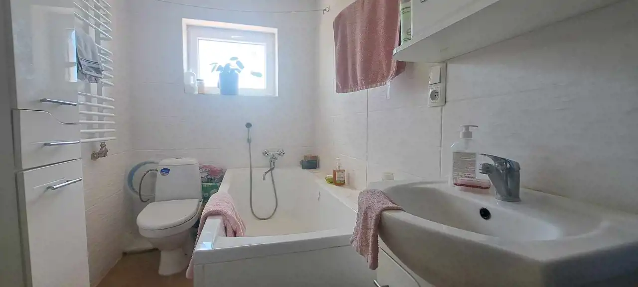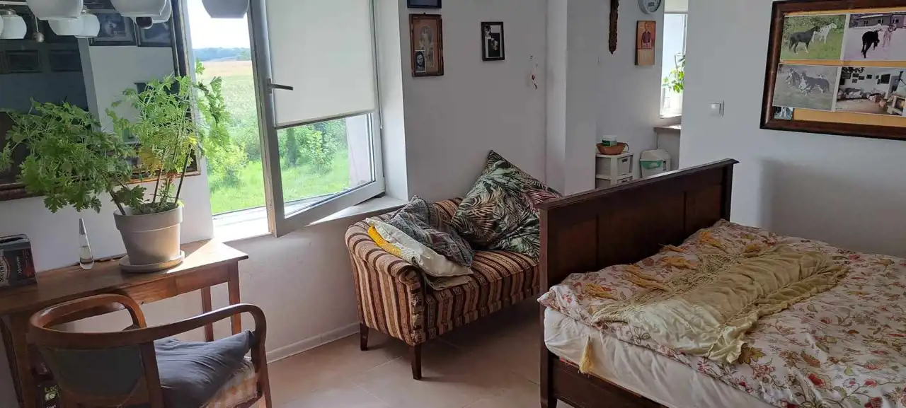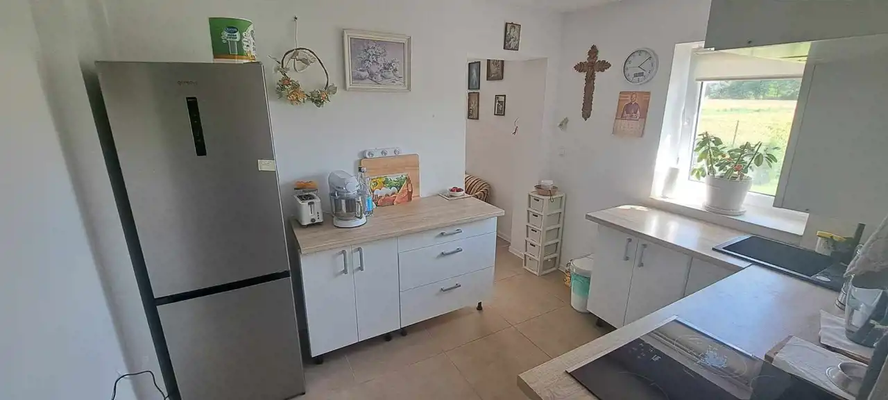 Do dyspozycji mamy bardzo dużą otwartą przestrzeń i bardzo dobrze oświetlone pomieszczenia, dużą łazienkę z oknem o pow. 5,6m2 z wanną, prysznicem i wc, kuchnia 15m2 z oknem otwarta, sypialnia 15m2 z dużą szafą , gabinet ok.25m2, salon 55m2 z wyjściem na taras ( kotłownia/pom.gospodarcze/wejścee) ,taras zadaszony ok 25m2,pom.przejściowe z wyjściem na strych ( MOŻLIWOŚC NADBUDOWY , ROZBUDOWY domu - strop betonowy, drożny przewód kominowy /możliwośc montażu kominka ). Pompa ciepła - możliwość fotowoltaiki na dachu. Ocieplenie styropian, 20cm wełna mineralna, strop betonowy, dom budowany z cegły i pustaka,w 2021 generalny remont i rozbudowa.
