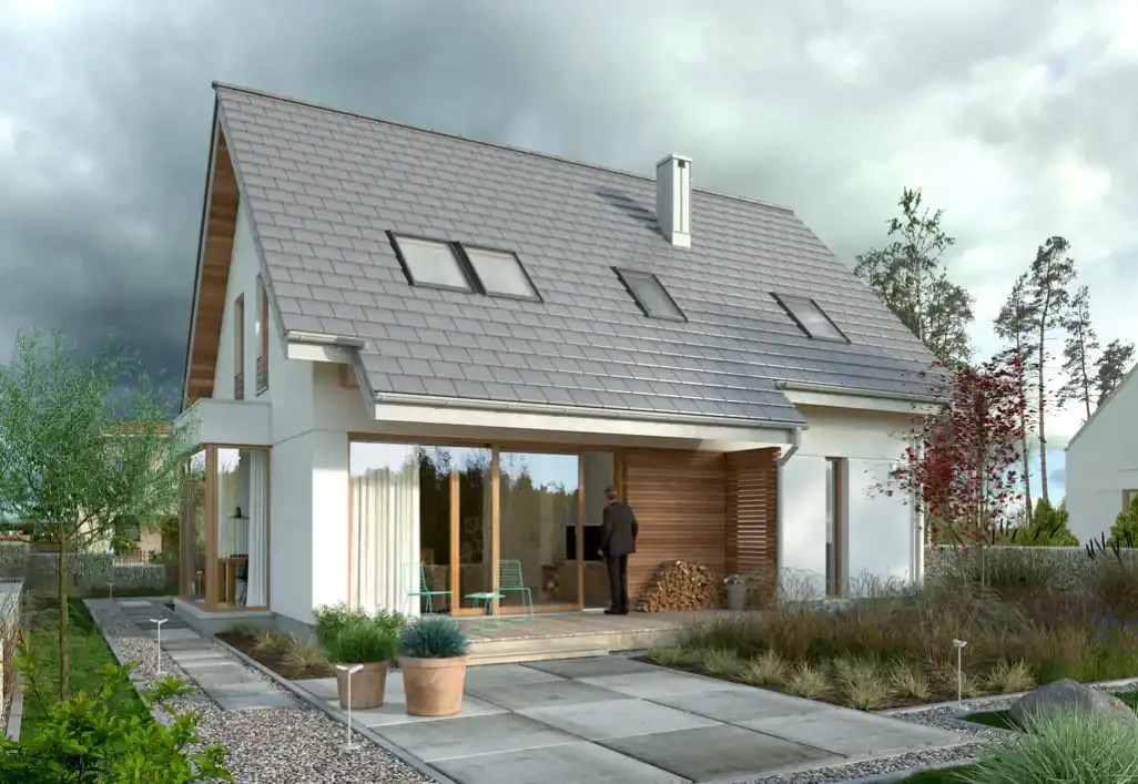 NOWOCZESNA ARCHITEKTURA I DOSKONAŁA FUNKCJONALNOŚĆ Dom został zaprojektowany z myślą o maksymalnym komforcie codziennego życia, przestrzeni oraz naturalnym świetle.