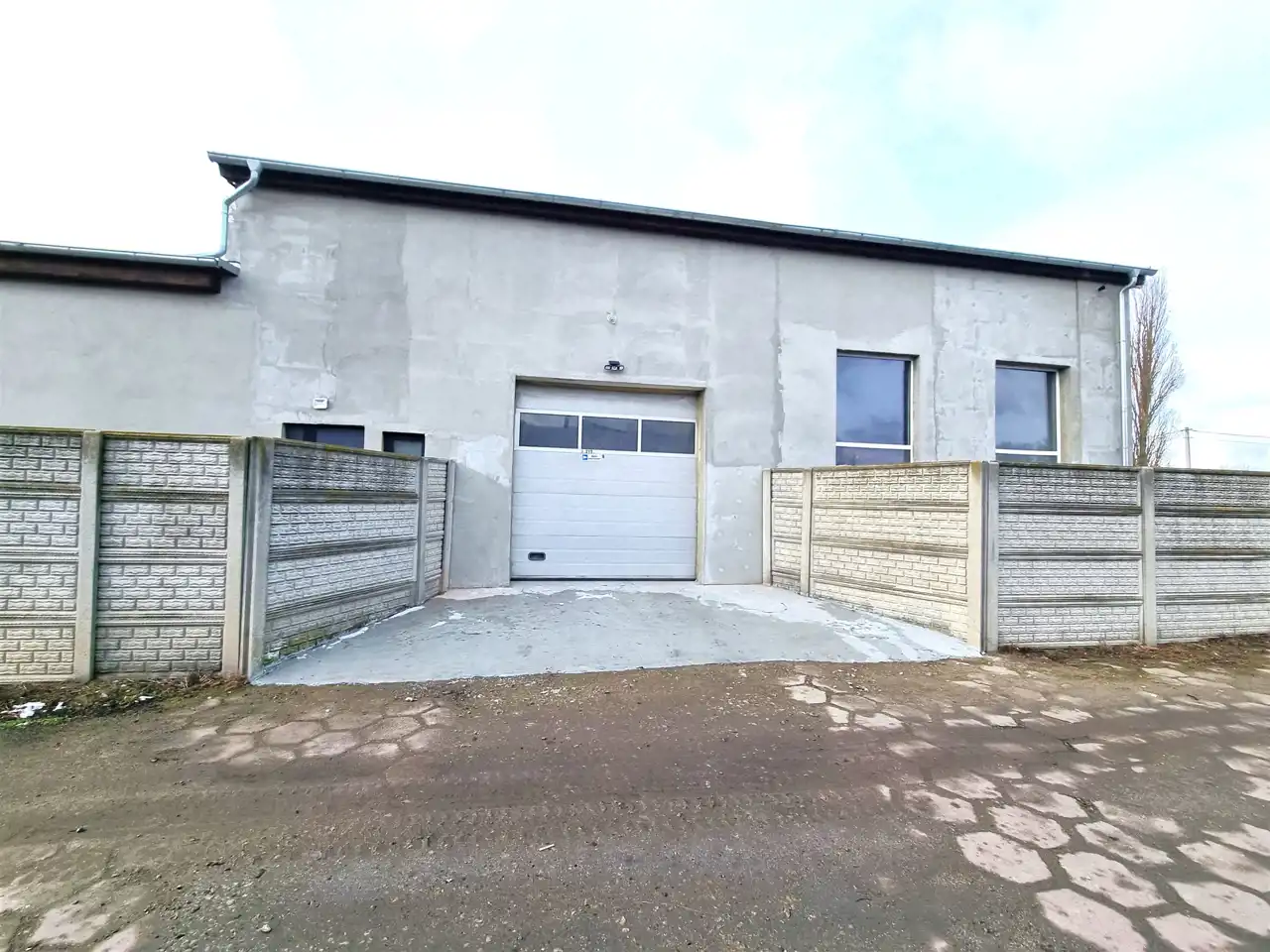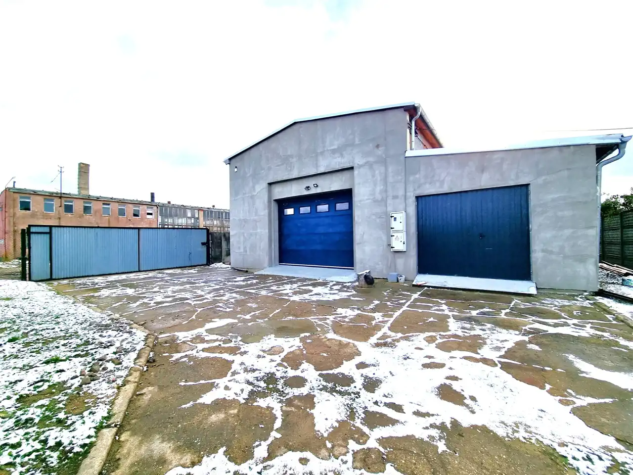 - 3 większe LOKALE, garaż dwustanowiskowy, pomieszczenia socjalne, magazynowe, kotłownia i pomieszczenie mieszkalne, Przed głównymi wjazdami do budynku, plac parkingowo/manewrowy