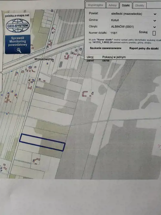 W ofercie sprzedaży piękna działka rolno-budowlana o powierzchni 1,5ha i o szerokości 52m o numerze ewidencyjnym 118/1 w miejscowości Albinów gm. Kotuń, miejscowość ta znajduje się przy stacji kolejowej o nazwie Sosnowe tj. ok.10 km od Kałuszyna i 20 km od Siedlec, a od budowy autostrady A2 tylko 6km. Działka znajduje się w przepięknej okolicy wokół luźna zabudowa a wokół ale również i w dalszej części działki piękny las. Sama działka położona przy drodze asfaltowej, w której znajduje się prąd i wodociąg, odległość od stacji PKP w Sosnowe tylko 500m. Dla tej działki nie ma obowiązującego miejscowego planu zagospodarowania przestrzennego (trzeba wystąpić o warunki zabudowy), jest możliwość dokupienia działki sąsiedniej o tych samych wymiarach dla powiększenia areału.