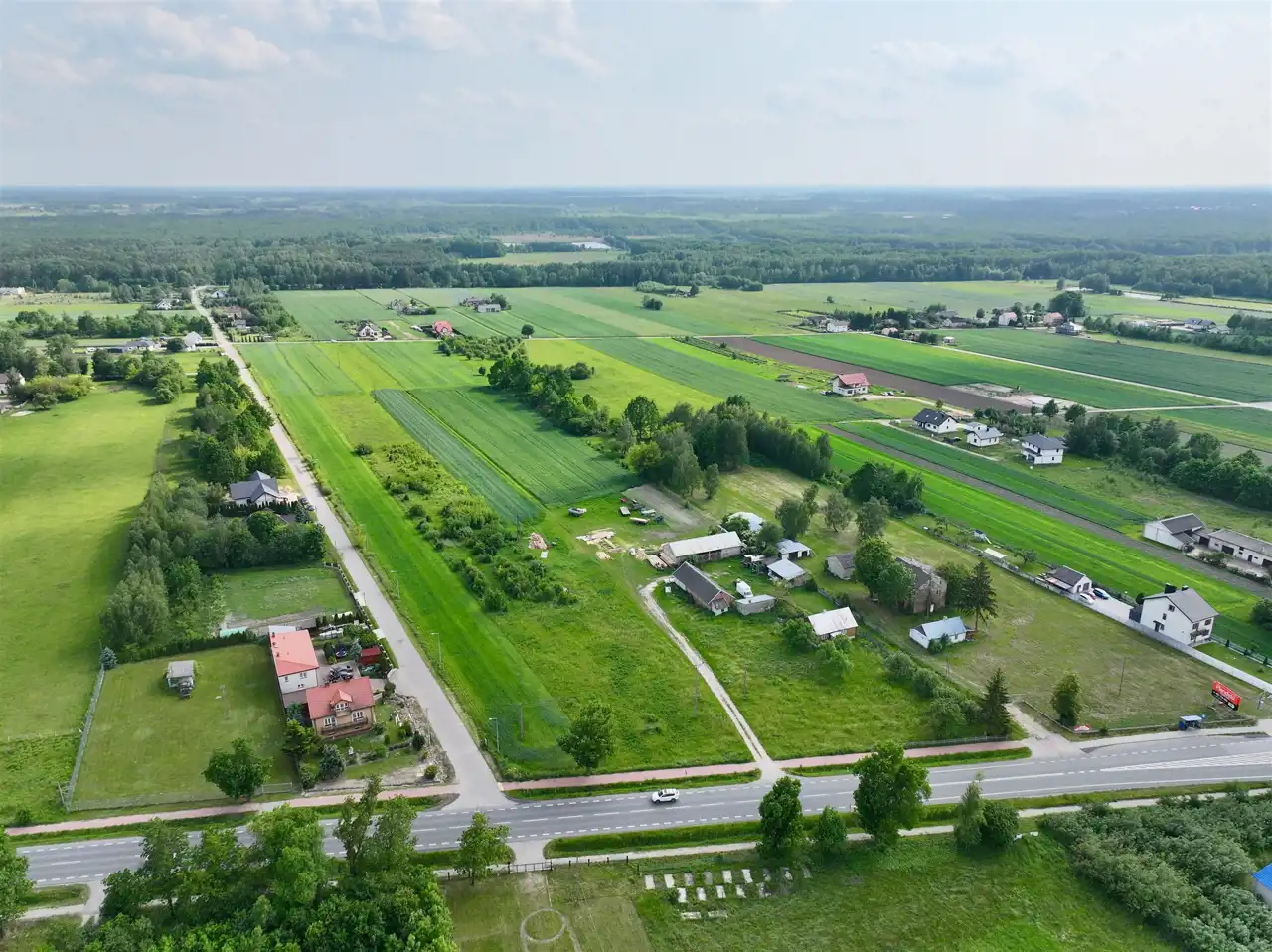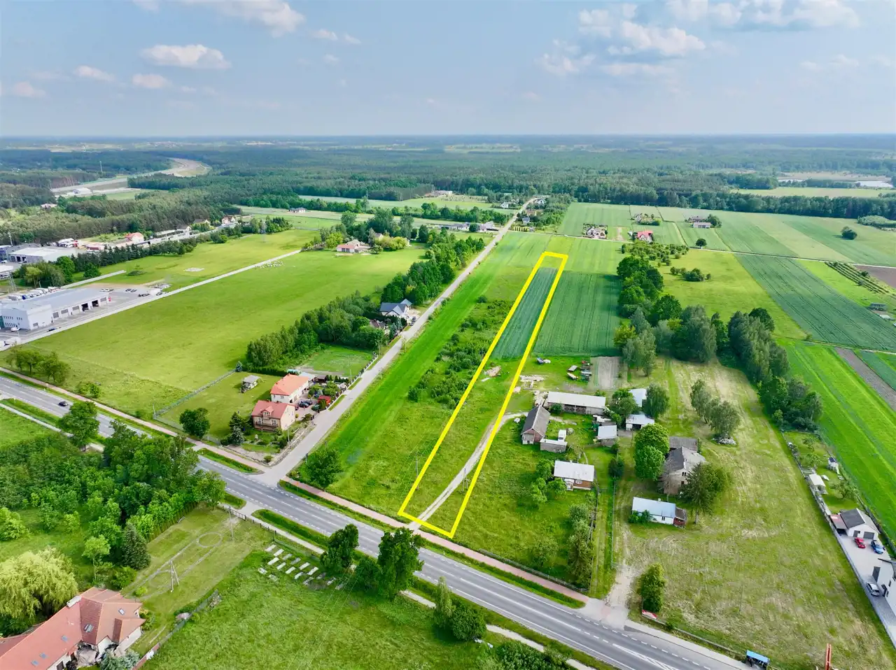 Nieruchomość składająca się z działki o powierzchni 9047 m2. Grunt znajduje w pierwszej linii zabudowy od DK2.