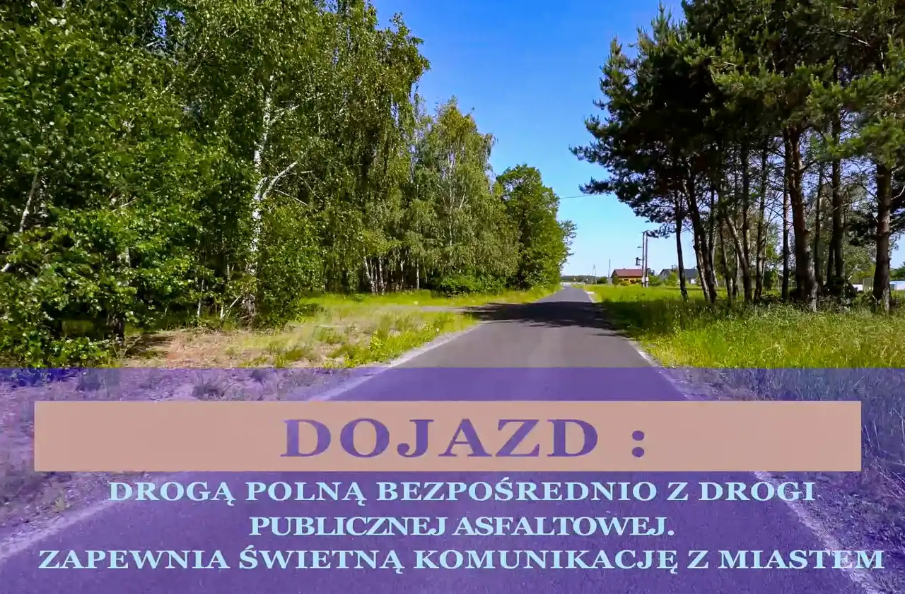 Dojazd do posesji z drogi publicznej, powiatowej (asfaltowej), przez drogę polną (wewnętrzną).