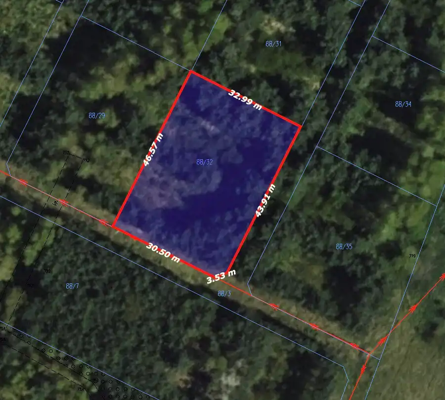 Infrastruktura techniczna uzbrojenia terenu: wodociąg gminny w drodze oraz linia energetyczna w sąsiedztwie.