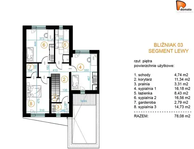 Układ zapewnia komfort, prywatność i wygodę dla całej rodziny.