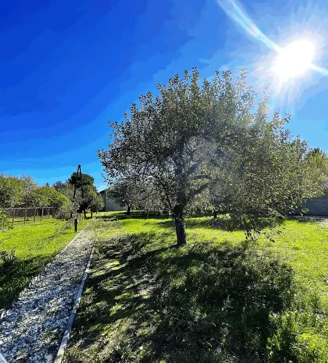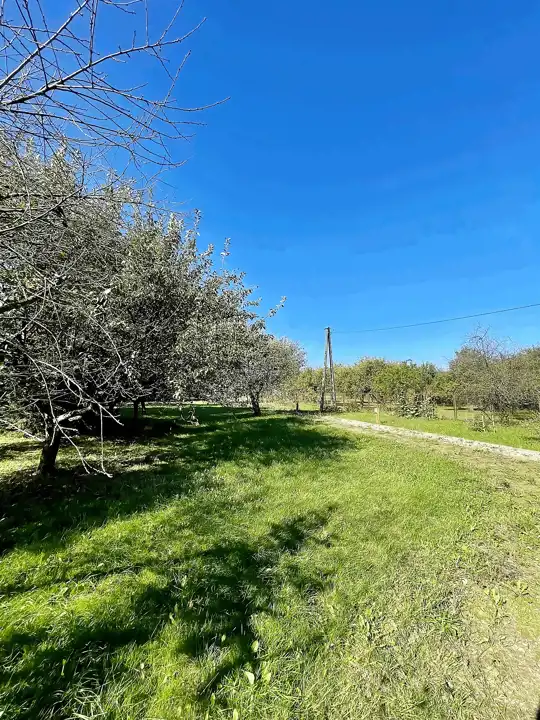 - Działka z drzewami owocowymi, częściowo ogrodzona
