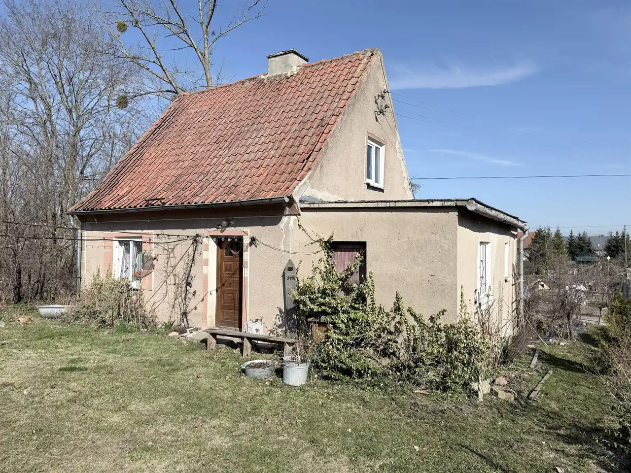 Budynek powstał w 1930 roku z czerwonej cegły, dach dwuspadowy pokryty oryginalną dachówką ceramiczną. Wszystkie okna PCV, podłogi drewniane. Rozprowadzona instalacja centralnego ogrzewania, z możliwością montażu kominka, co pozwala na stworzenie przytulnego, rodzinnego wnętrza.