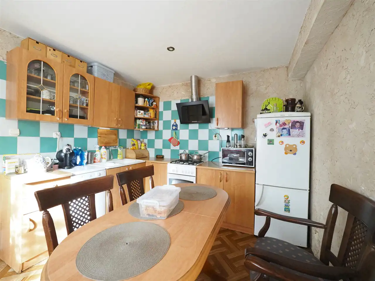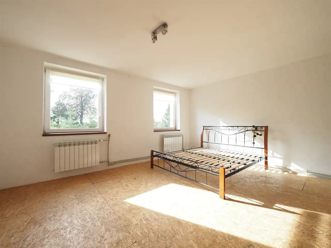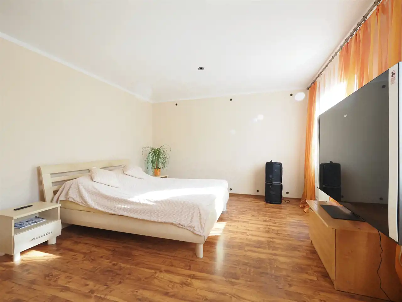 Dom po kapitalnym remoncie, został wybudowany 1990 roku z suporeksu. Składa się z parteru oraz poddasza. Na parterze znajdują się salon z kominkiem (18 m2), trzy pokoje (20 m2, 10 m2, 8 m2), kuchnia (12 m2), dwie łazienki (16 m2, 5 m2), przedpokój (8 m2), kotłownia (16 m2), dwa pomieszczenia gospodarcze (7 m2, 5 m2), spiżarnia (2 m2), wiatrołap (9 m2). Na poddaszu mieszczą się trzy pokoje (38 m2, 17 m2, 13 m2), przedpokój (7 m2).