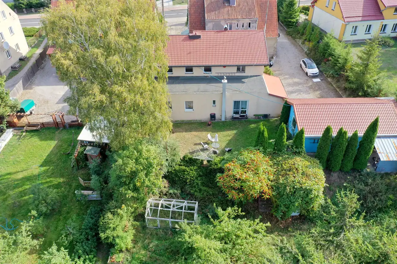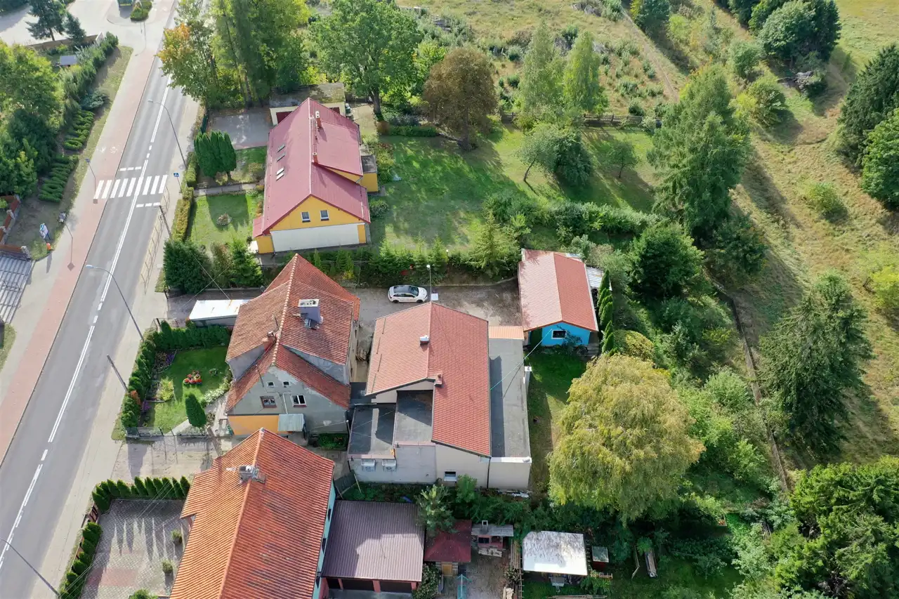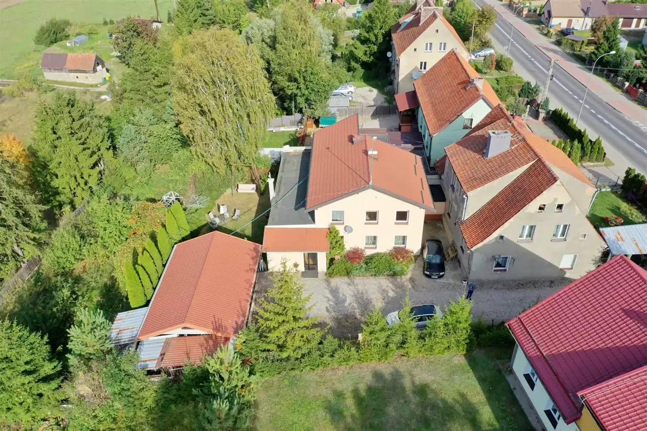Nieruchomość położona jest na ogrodzonej działce o powierzchni 1245 m2. Przy domu wybudowany został w 2018 roku garaż dwustanowiskowy o powierzchni zabudowy 59 m2. Działka jest bardzo ładnie zagospodarowana. W salonie znajduje się wyjście do ogrodu, który porośnięty jest drzewami owocowymi oraz krzewami ozdobnymi.