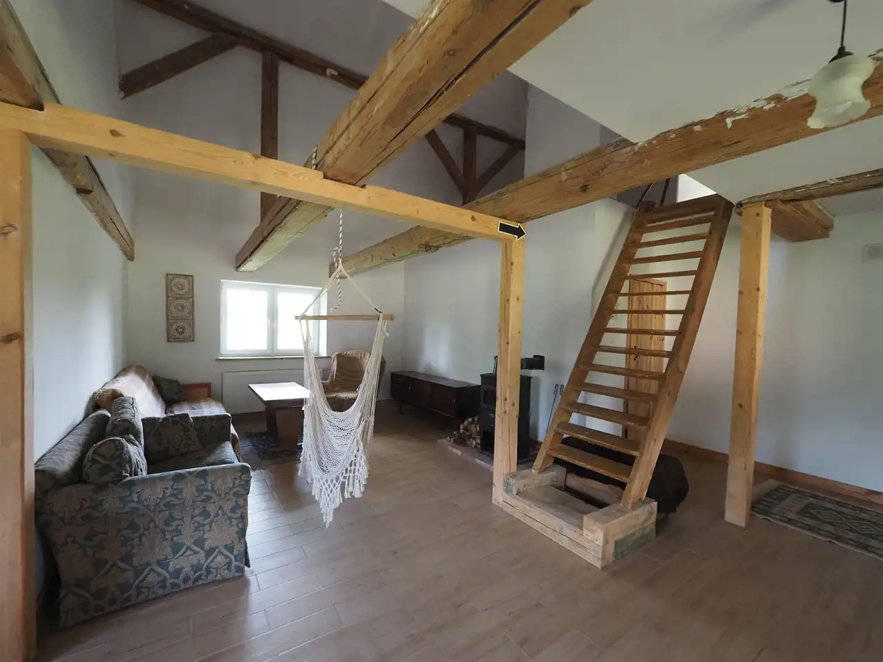 Piękny drewniany dom został wybudowany w roku 1930, natomiast w ostatnich latach przeszedł gruntowny remont z zachowaniem jego pierwotnego klimatu oraz modernistycznego stylu. Budynek składa się z parteru oraz poddasza użytkowego. Na parterze ( około 100 m2) mieszczą się: dwie sypialnie (9,5 m2, 14,8 m2), kuchnia (15 m2), dwie łazienki (5,5 m2, 5,6 m2) korytarz w którym znajduje się kotłownia, przestronny salon z aneksem kuchennym (47,5 m2) oraz wyjściem na klimatyczną werandę.