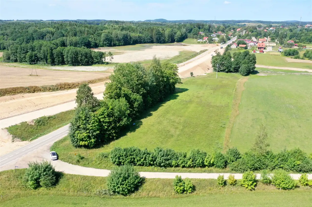 Teren działek lekko falisty, kształt zbliżony do prostokąta.