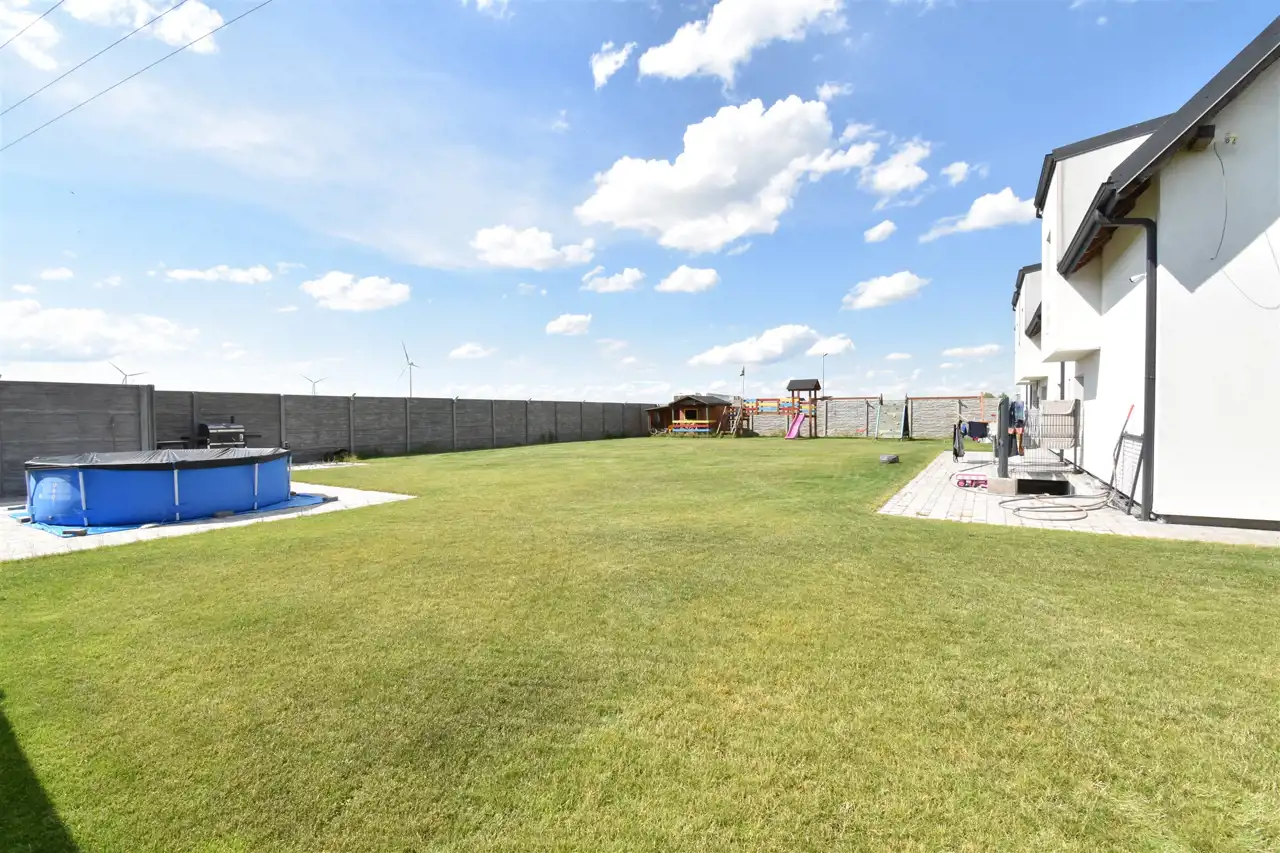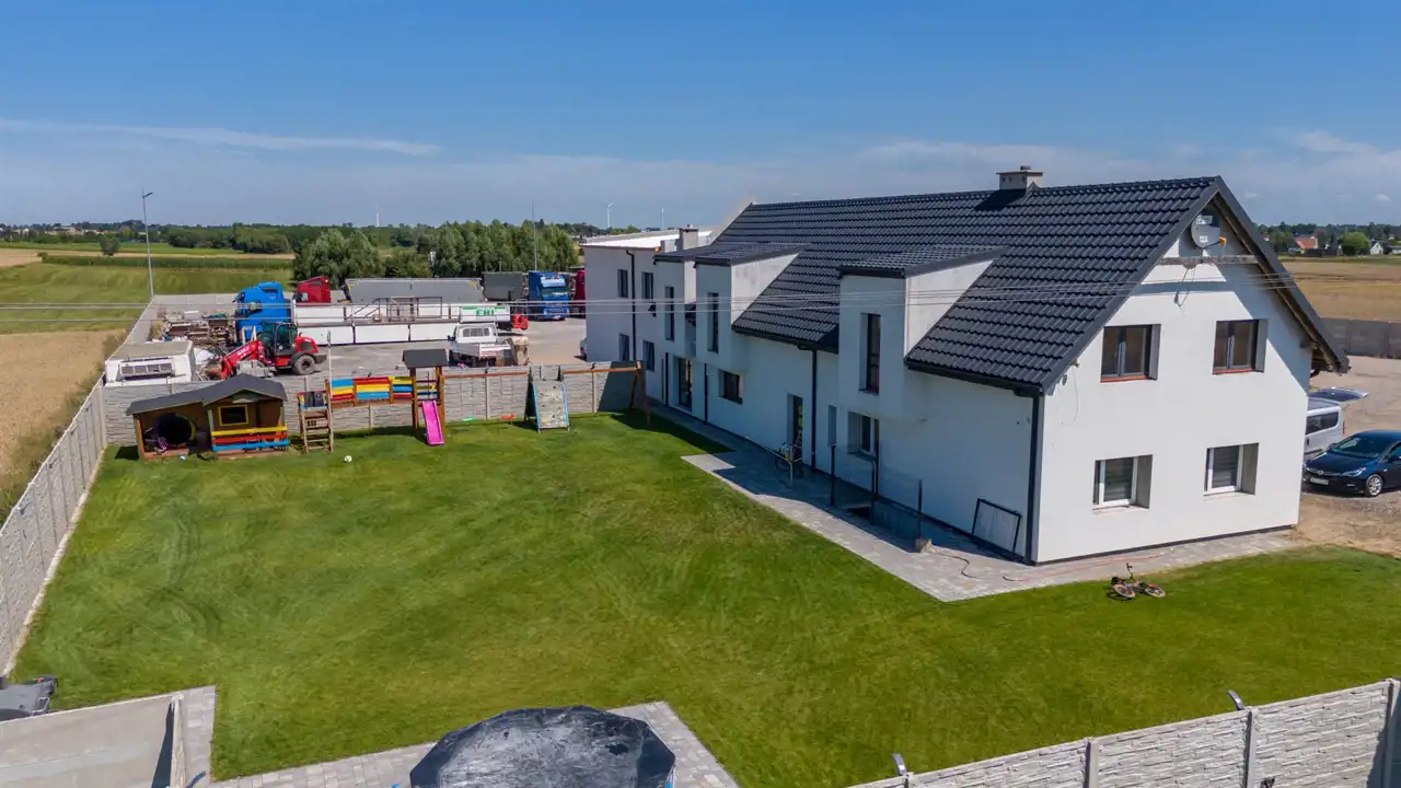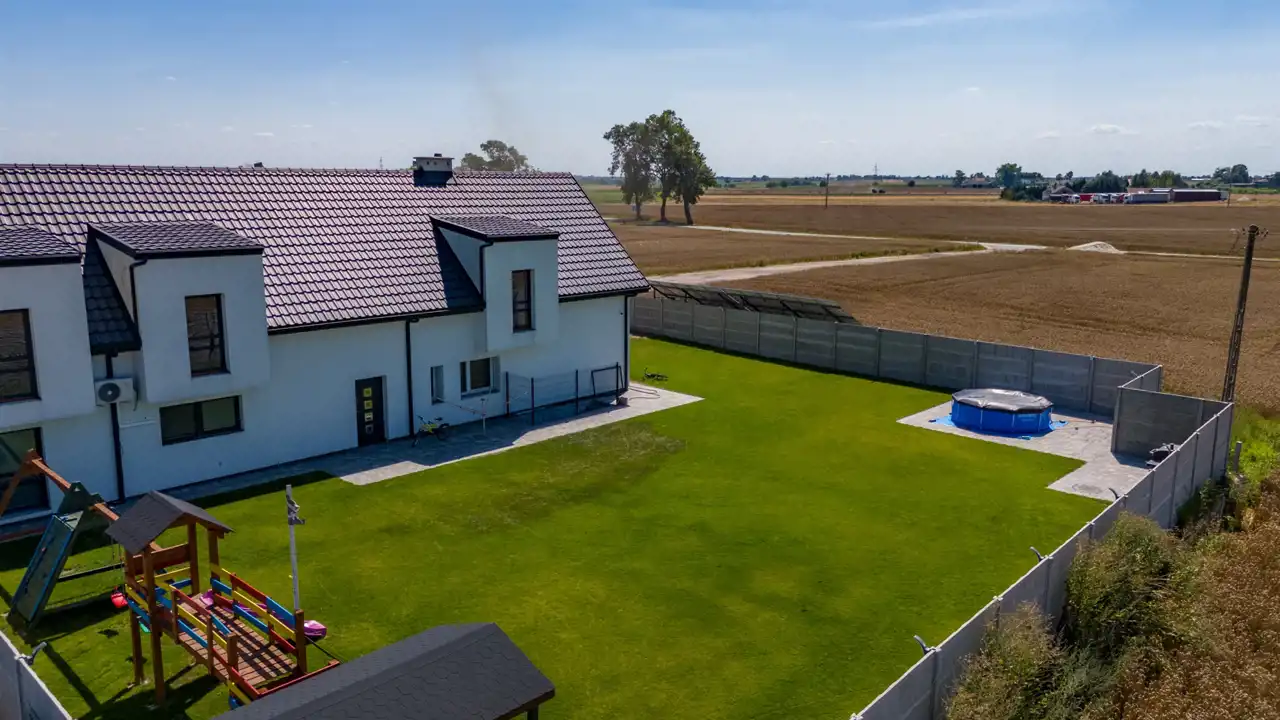 Na sprzedaż jest cała nieruchomość z wyposażeniem poza ogrodowym placem zabaw i kosiarką samojezdną. W salonie umili czas klimatyzacja oraz fajny, wysuwany ekran projekcyjny pod rzutnik.