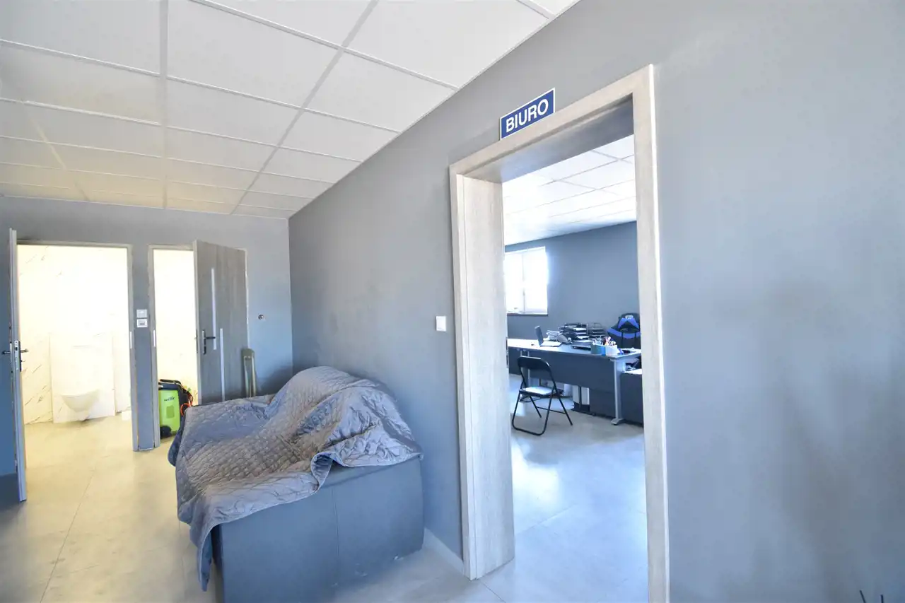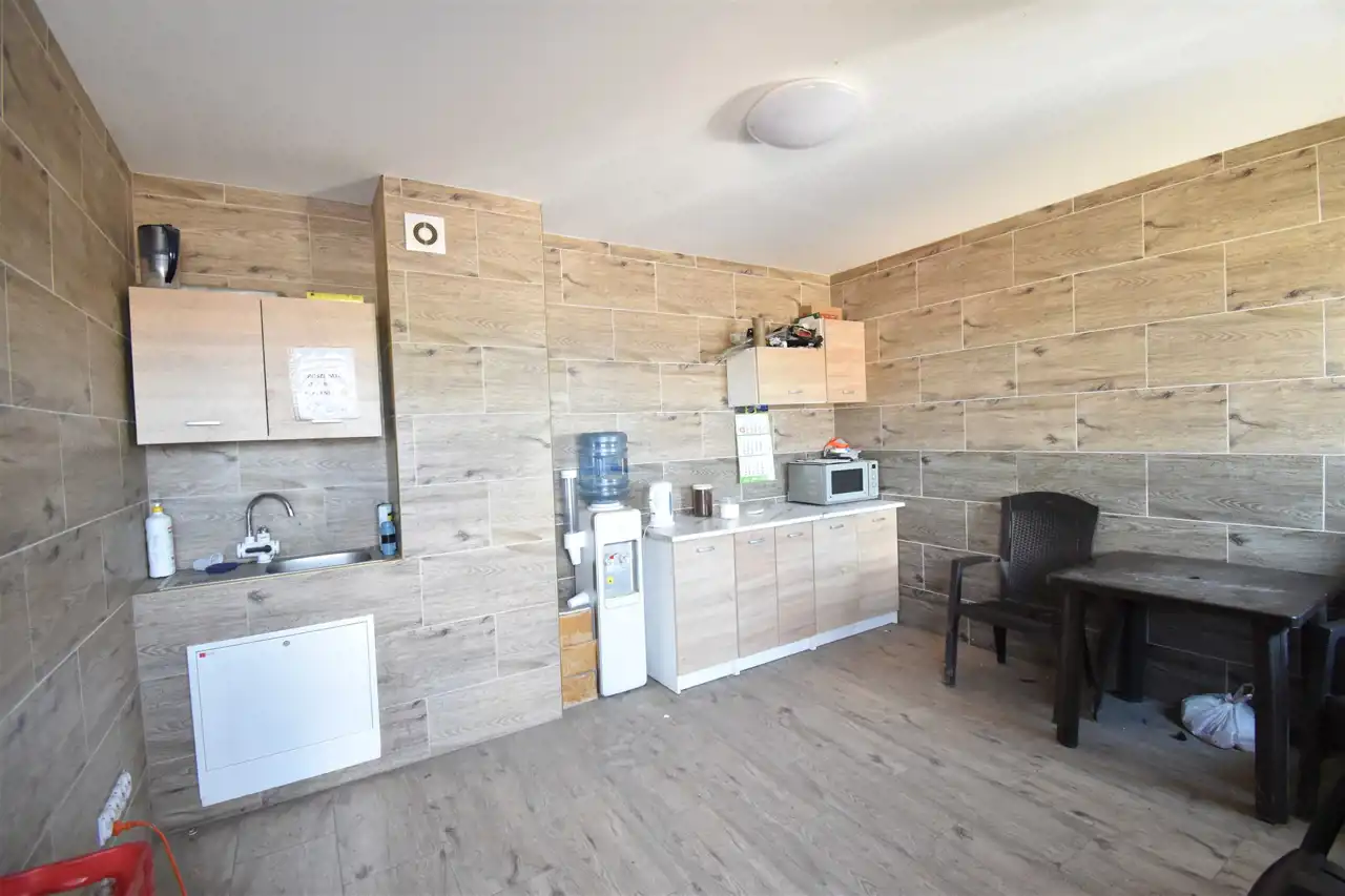 Biuro jest wykończone i optymalnie zagospodarowane. Mensa pracownicza (fot. 5) z powodzeniem sprawia, że pracownicy mają swoją przestrzeń. Z biura wychodzimy na plac lub na halę 5-stanowiskową (2 stanowiska są wylane, 3 pozostają do zagospodarowania dla kupującego pod konkretny biznes - kanał, platforma pod maszynę itp.). Wysokość bramy wjazdowej na stanowisko - 4,2m. Wszystkie bramy są automatyczne, na pilota.
