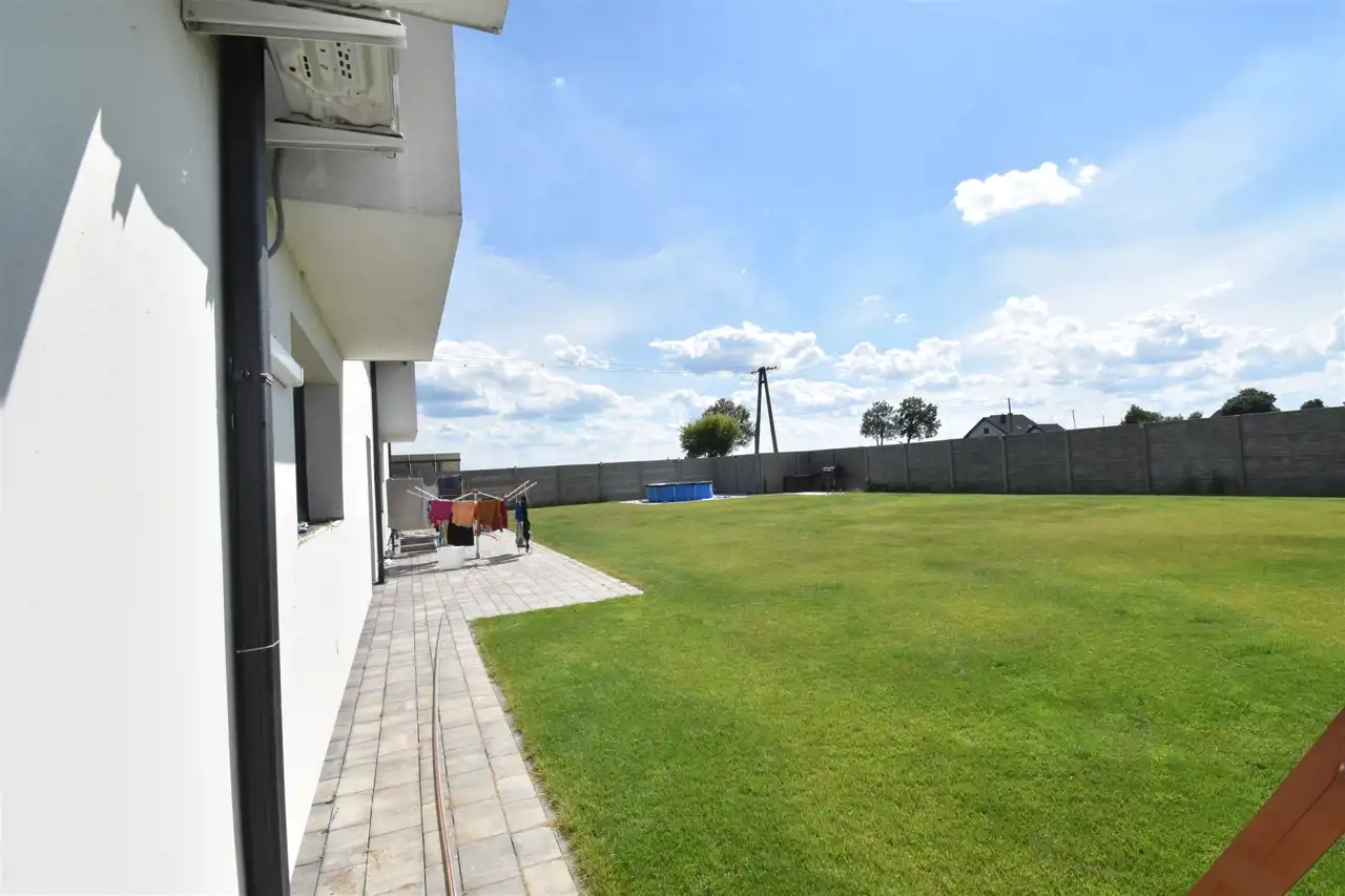 Na sprzedaż jest cała nieruchomość z wyposażeniem poza ogrodowym placem zabaw i kosiarką samojezdną. W salonie umili czas klimatyzacja oraz fajny, wysuwany ekran projekcyjny pod rzutnik.