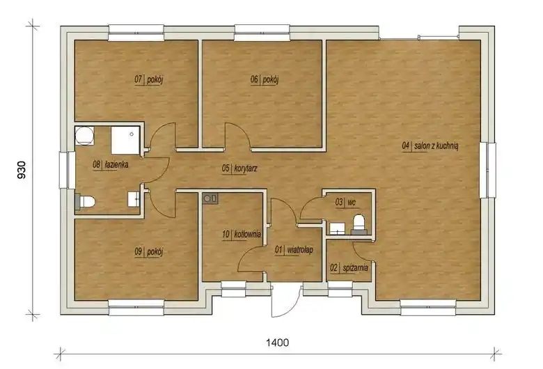 Na powierzchnię domu 100 m2 składa się: