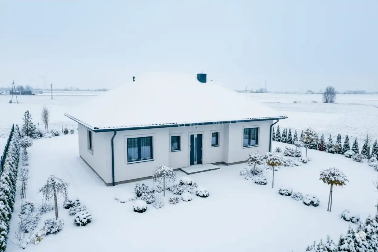 Dom ogrzewany piecem na pellet.