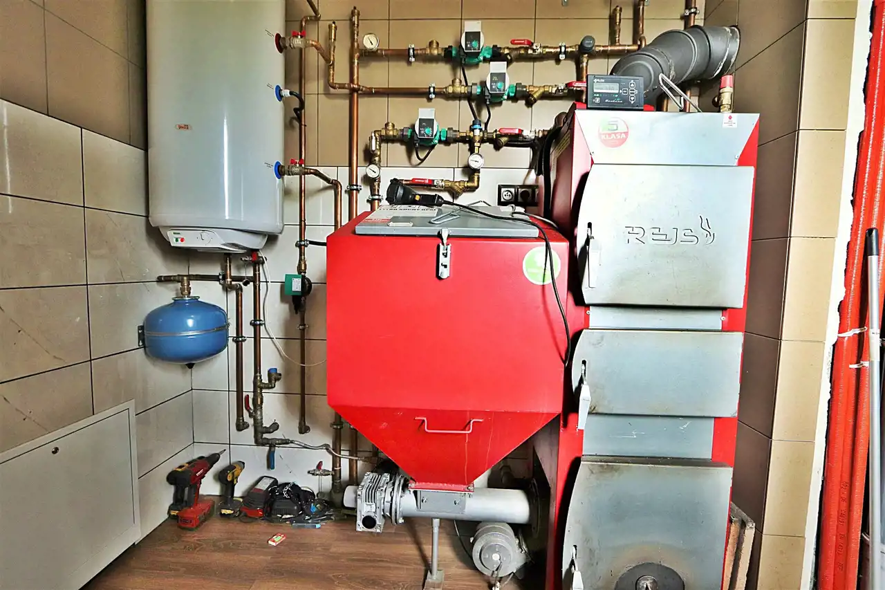 Głównym źródłem ciepła w domu jest dwufunkcyjny piec na ekogroszek i drewno