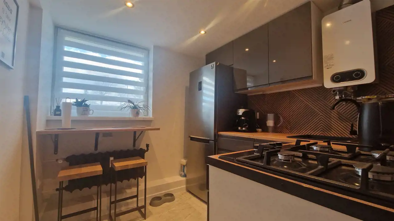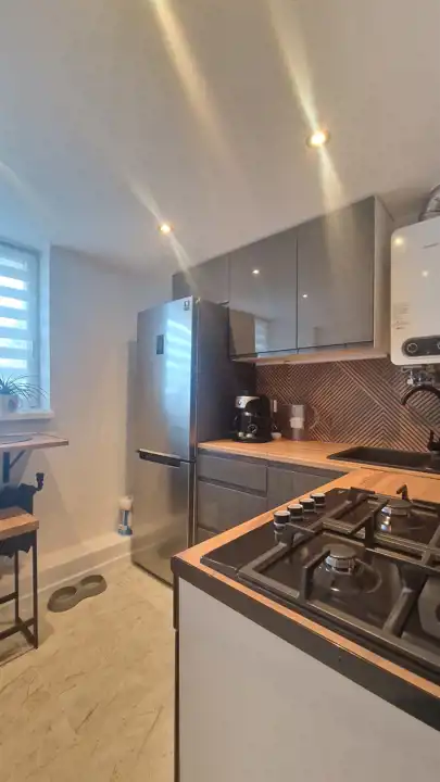 Do sprzedania niewielki, sielski apartament w malowniczym i zacisznym miejscu Kowar. Mieszkanie o powierzchni 35,13 m2 znajduje się na niskim parterze i składa się z przytulnie urządzonego pokoju dziennego, mniejszej sypialni z pojemną szafą garderobianą, kuchni z meblami na wymiar, lodówką i płytą na gaz, łazienki razem z WC, przedpokoju z szafą przesuwną oraz piwnicy - 3,69m2. Lokal dodatkowo wyposażony w instalację alarmową. Jest gotowy do zamieszkania lub wynajmu. Idealne mieszkanie na komfortowy wypoczynek dla dwóch dorosłych osób, ale zaplanowane również tak, aby pomieścić maksymalnie cztery osoby - idealne miejsce na całoroczne wypady w góry lub jako dochodowa inwestycja pod wynajem dla turystów.