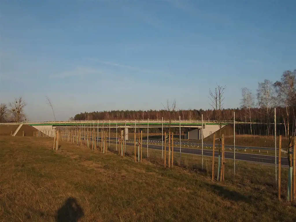 Pierwsza linia zabudowy. Teren położony przy drodze serwisowej, posiada kilka zjazdów. W pobliżu 2 węzły, do najbliższego około 1 km.
