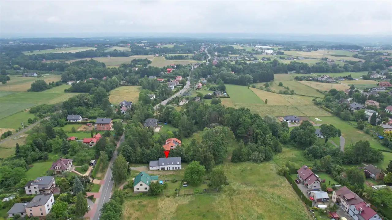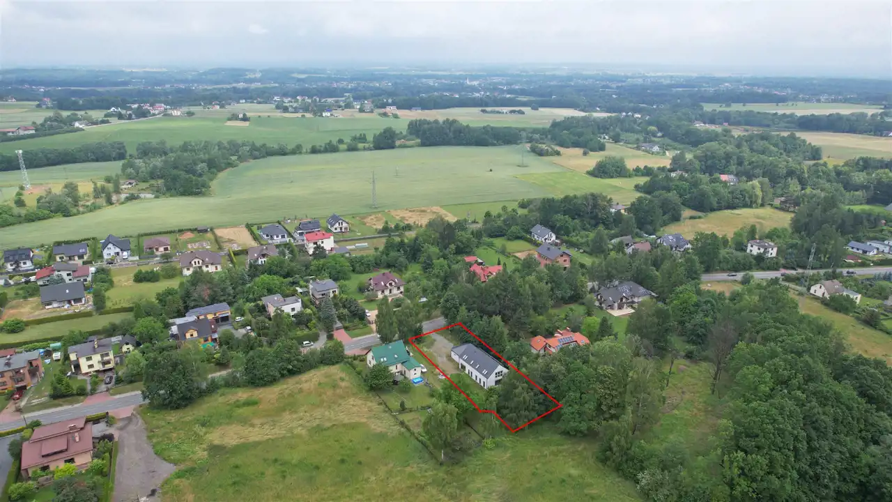 Dom posadowiony jest na pełnej zieleni działce o regularnym kształcie co daje duży potencjał dla własnej aranżacji oraz zapewnia możliwość niezakłóconego odpoczynku. W pobliżu znajdują się zabudowania jednorodzinne. Szkoła podstawowa, przedszkole oraz inne obiekty użyteczności publicznej znajdują się w odległości ok. 1,5 km.