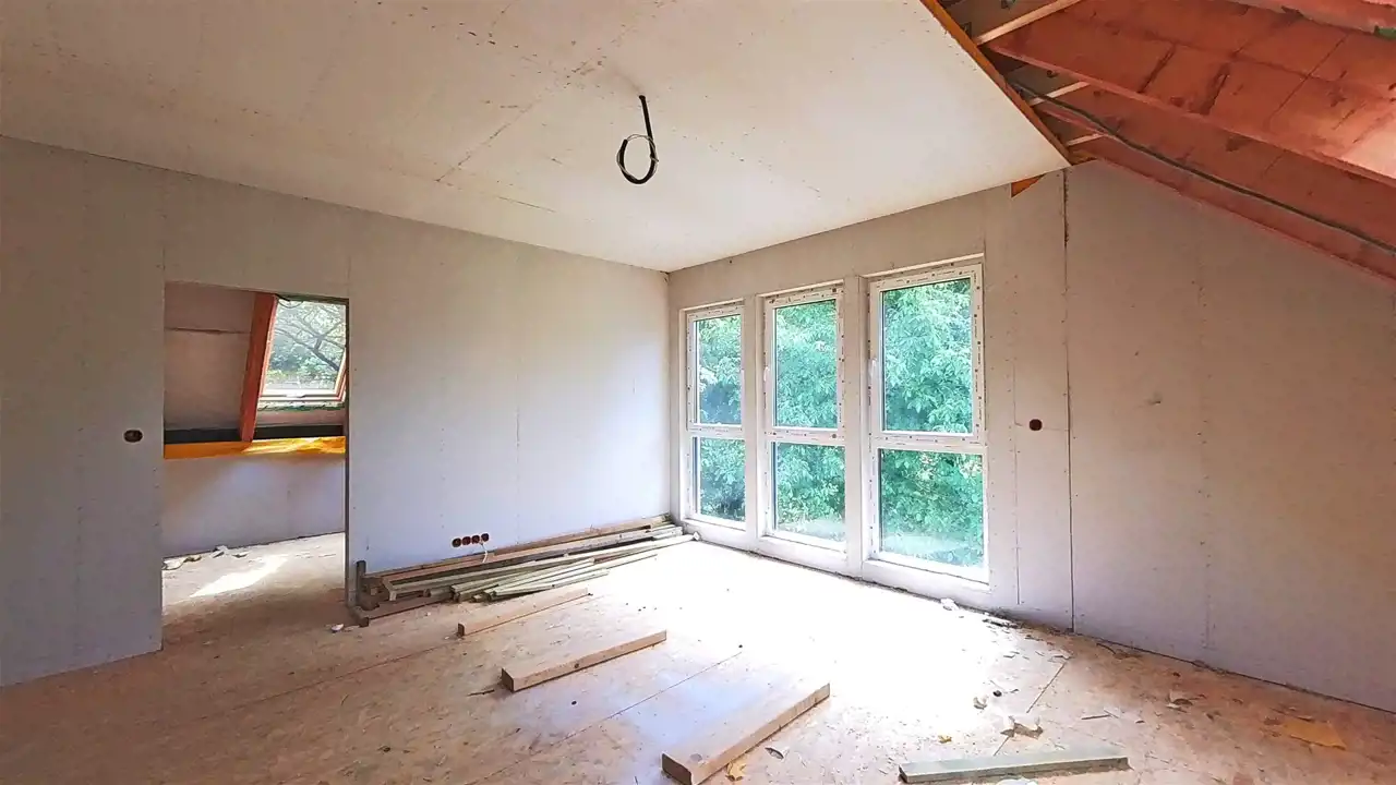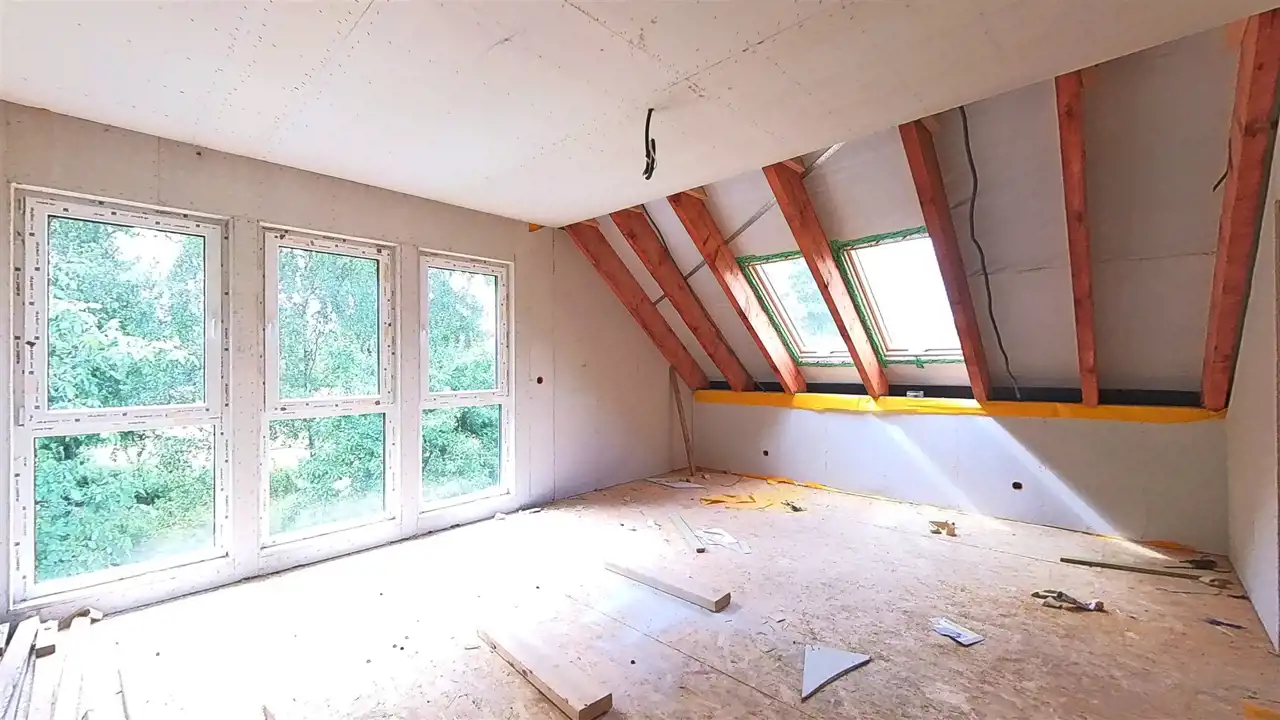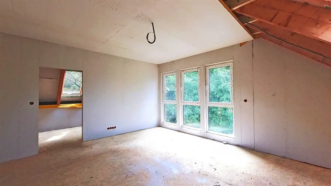 Dom wybudowany w systemie szkieletowym z 30-letnią gwarancją wg. najnowszej niemieckiej technologii o najwyższej klasie energetycznej „A”.