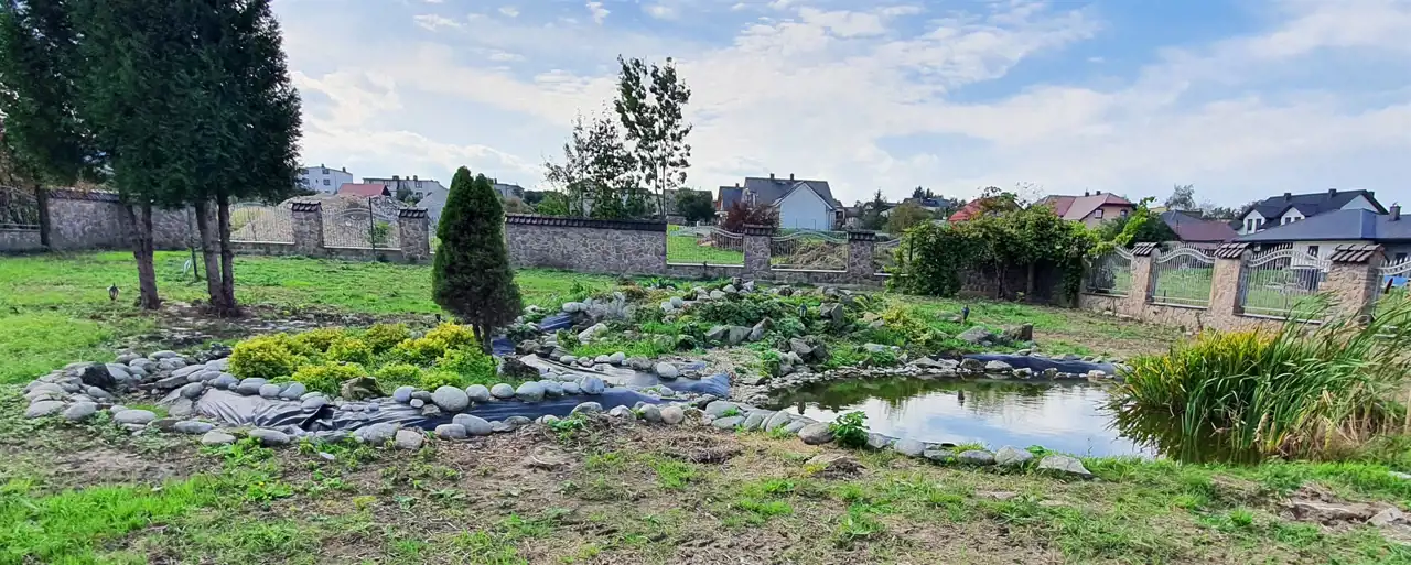 - Działka Zagospodarowana, lekko nachylona, prostokąt