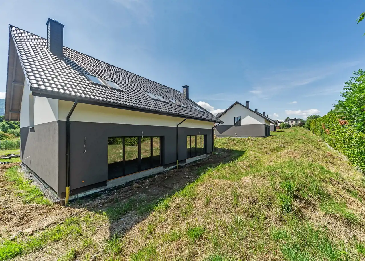 Na sprzedaż domki w zabudowie bliźniaczej o powierzchni całkowitej 128 m2 usytuowane na pięknych widokowych działkach o powierzchni 462-557 m2 zlokalizowane w Kozach przy ul.Wiejskiej. Dom piętrowy z użytkowym poddaszem.