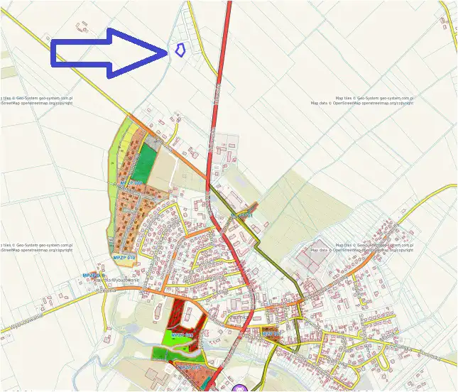 - Media Woda: brak; Kanalizacja: brak; Prąd: w ulicy; Gaz: brak
