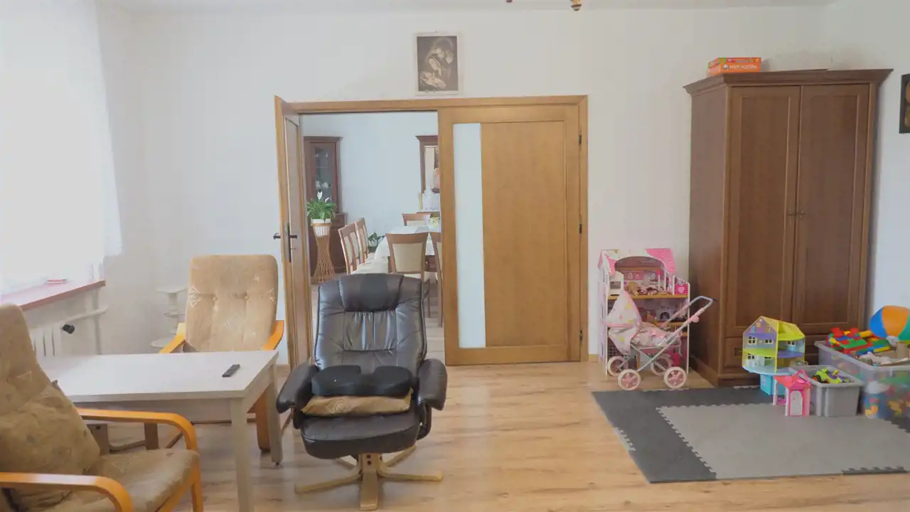 - dom wolnostojący wybudowany w latach 80 - tych XX wieku, całkowicie podpiwniczony. W 2022 roku parter domu przeszedł modernizację , na podłogach położono gres, wymieniono stolarkę drzwiową oraz okna PCV w całym budynku. Dwie kondygnacje domu stanowią lustrzane odbicie, stanowią również odrębną część mieszkalną i posiadają osobne wejścia z korytarza.