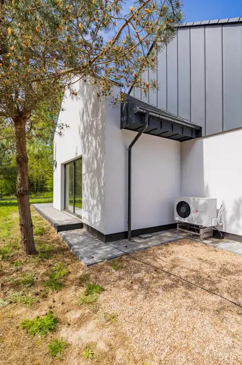 - Nowoczesne rozwiązania – pompa ciepła zapewnia niskie koszty ogrzewania, rekuperacja, ogrzewanie podłogowe.
