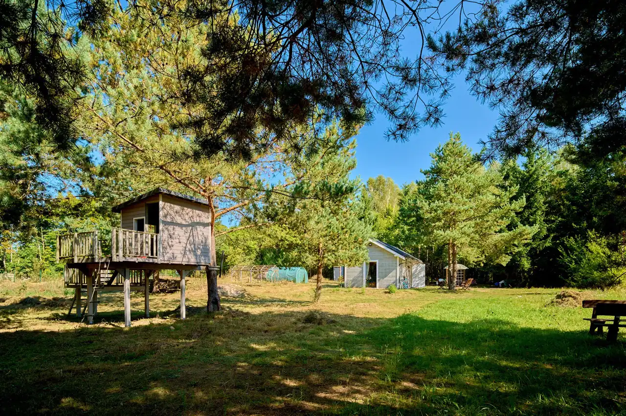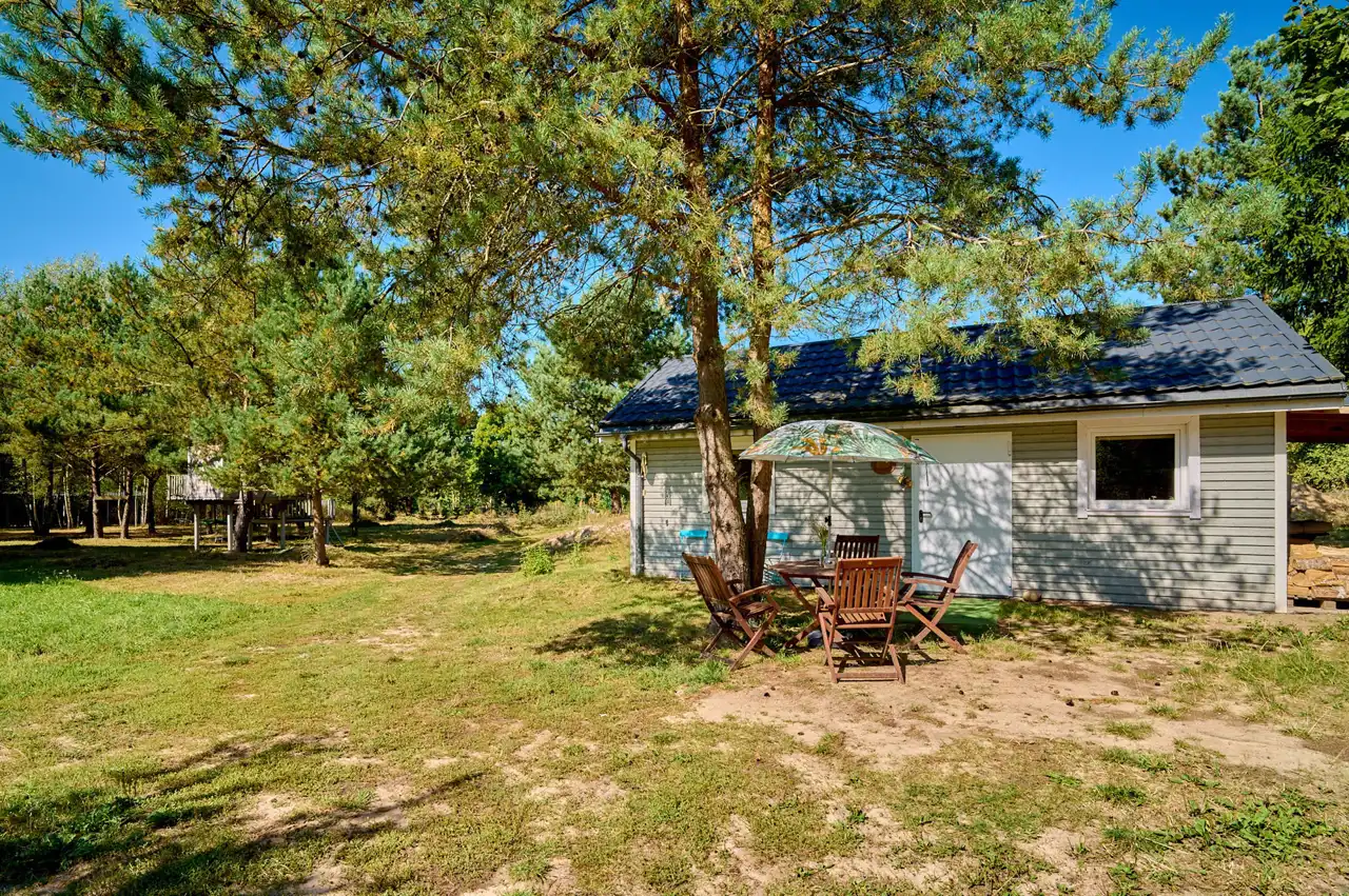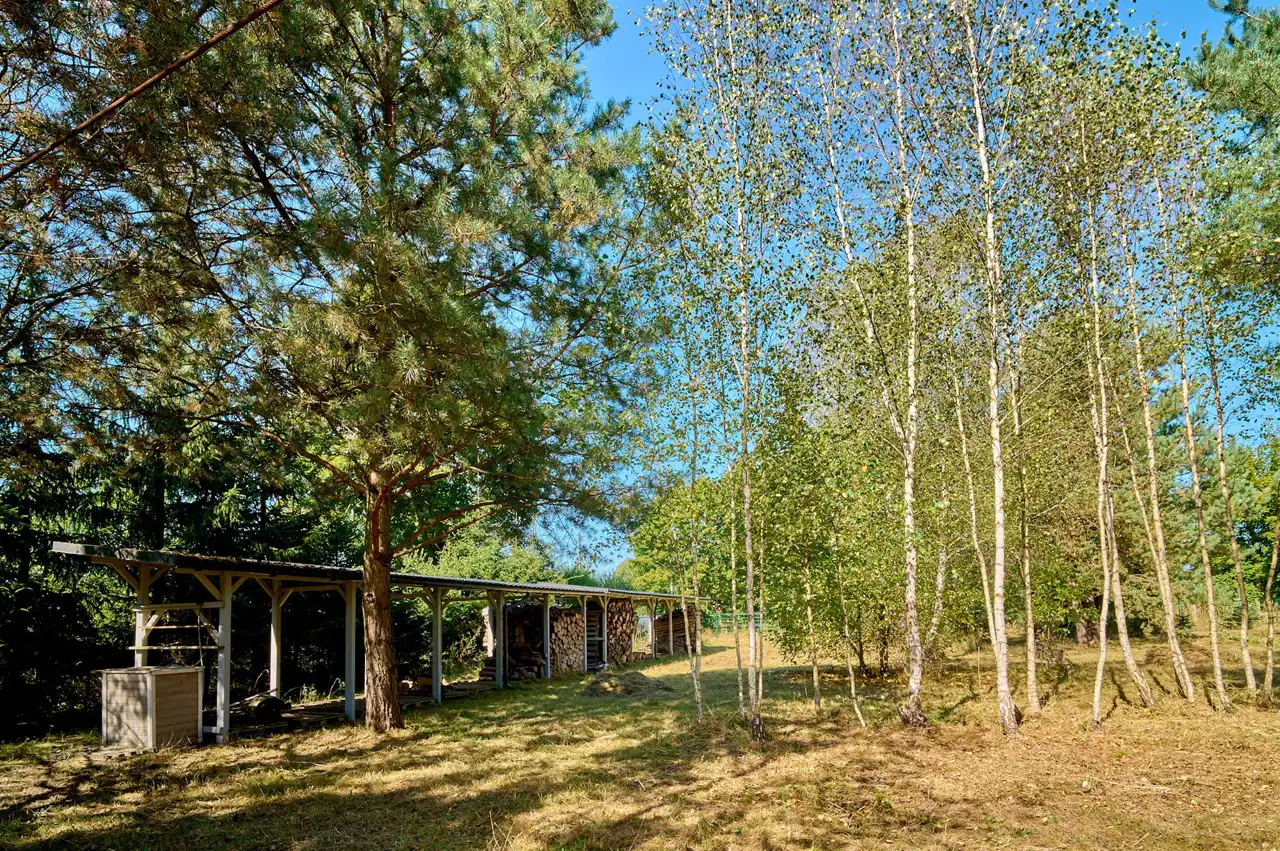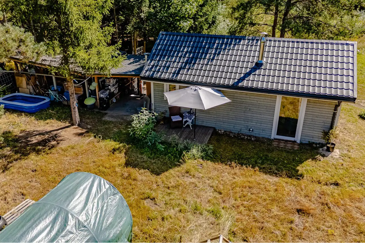 Na działce znajduje się budynek o pow. ok.35 m2 pełniący rolę domku letniskowego, całorocznego. Wybudowany w technologii szkieletowej (ok. 5 letni). W tym rekreacyjnym domku wyodrębniono salon, gabinet/pokój dziecięcy oraz łazienkę z wc. Do domku przylegają 2 wiaty o łącznej pow. ok 30 m2. To idealne miejsce na rozwój przedsiębiorczości, stworzenie małego warsztatu lub dodatkowa przestrzeń do wypoczynku.