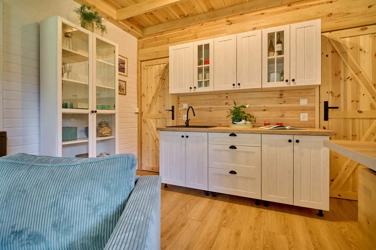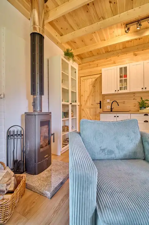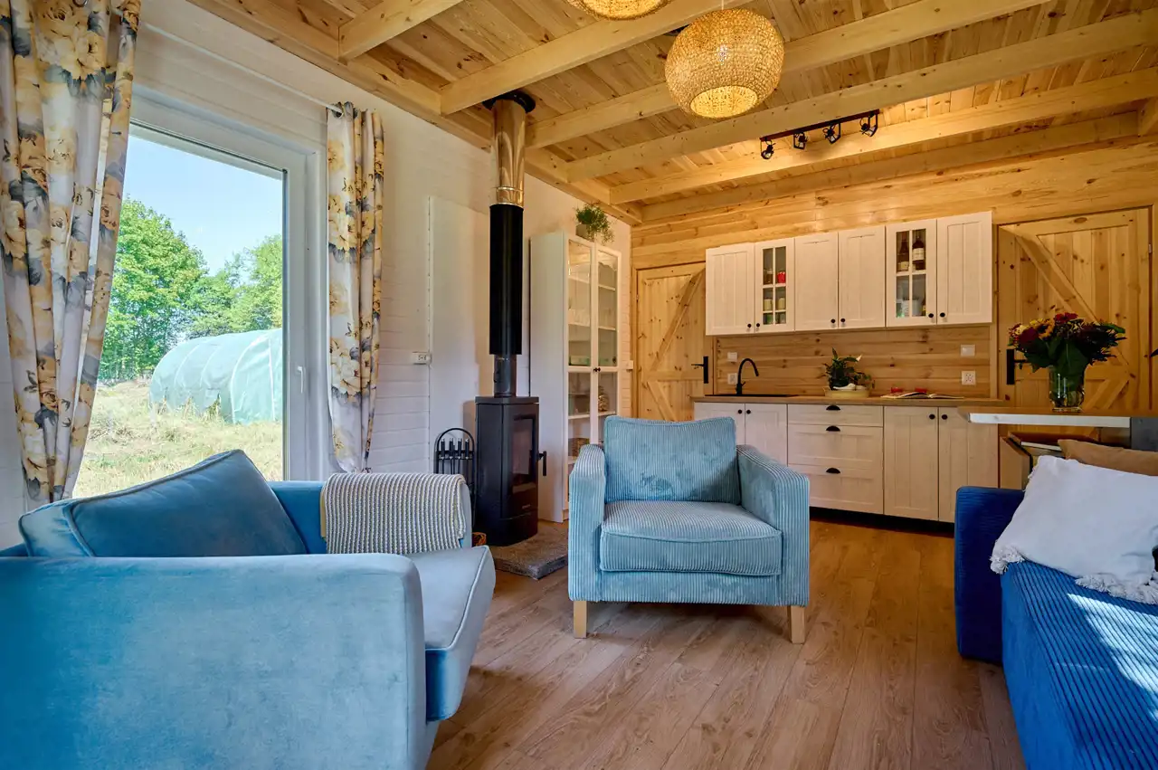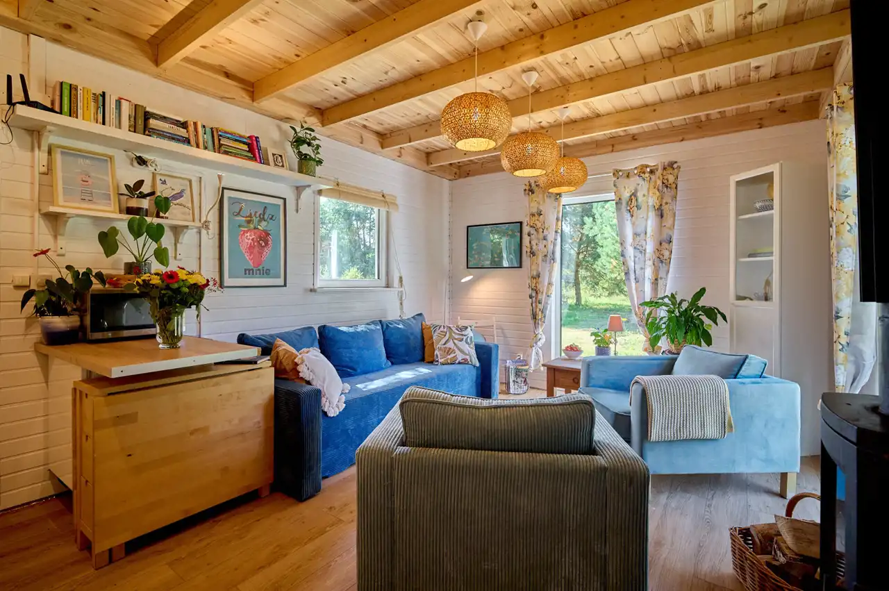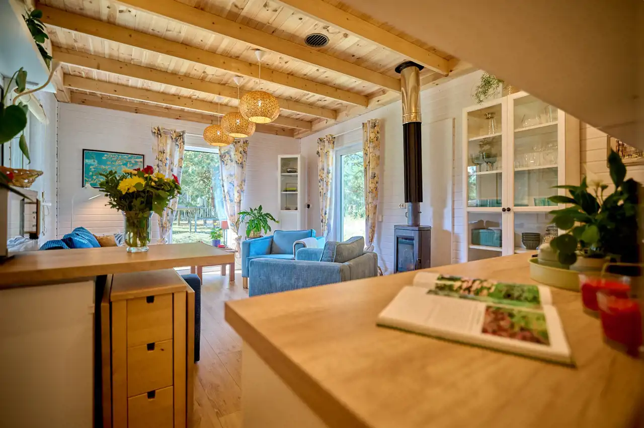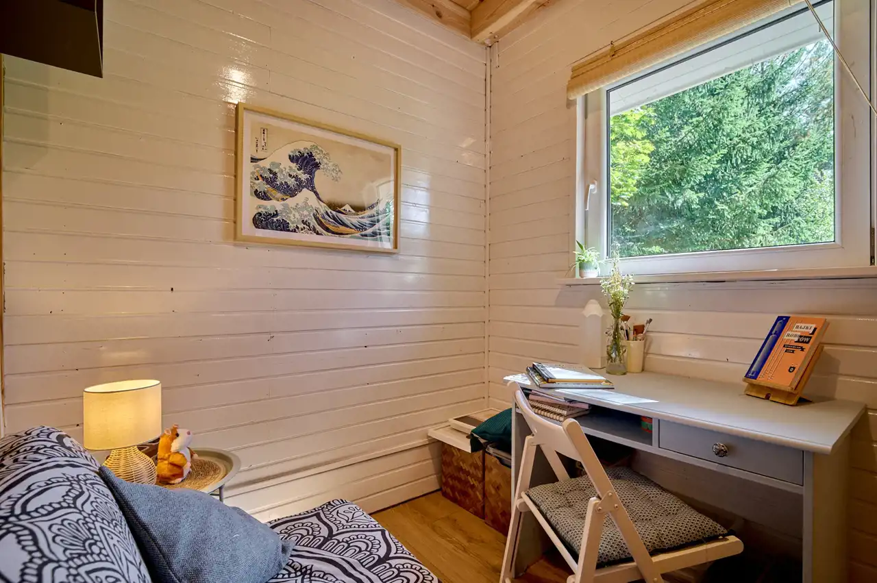 Na działce znajduje się budynek o pow. ok.35 m2 pełniący rolę domku letniskowego, całorocznego. Wybudowany w technologii szkieletowej (ok. 5 letni). W tym rekreacyjnym domku wyodrębniono salon, gabinet/pokój dziecięcy oraz łazienkę z wc. Do domku przylegają 2 wiaty o łącznej pow. ok 30 m2. To idealne miejsce na rozwój przedsiębiorczości, stworzenie małego warsztatu lub dodatkowa przestrzeń do wypoczynku.