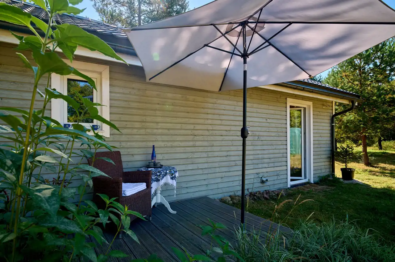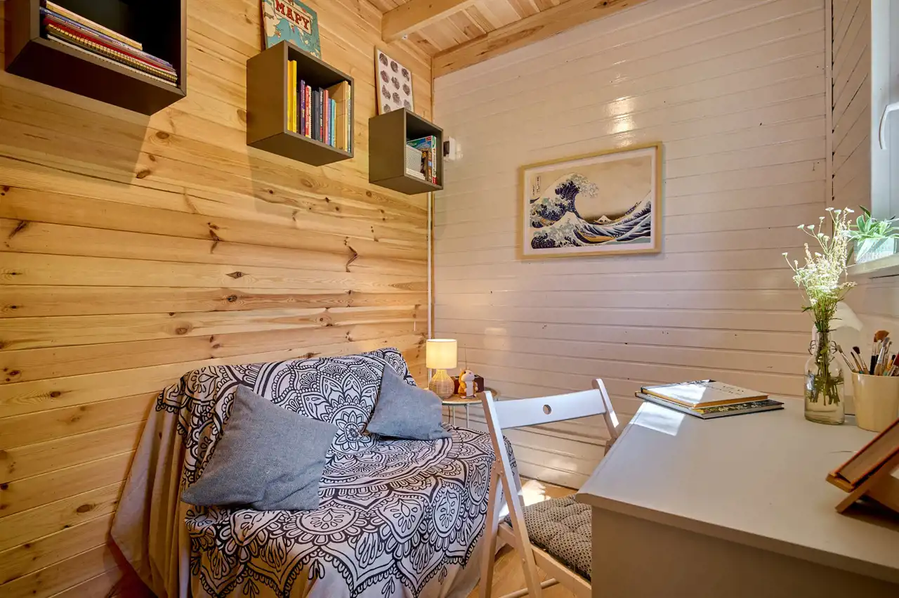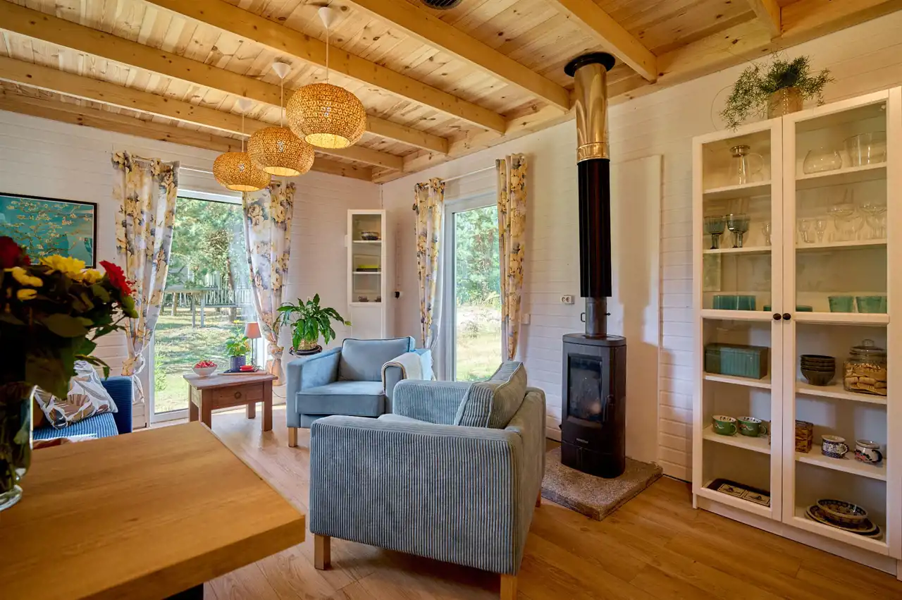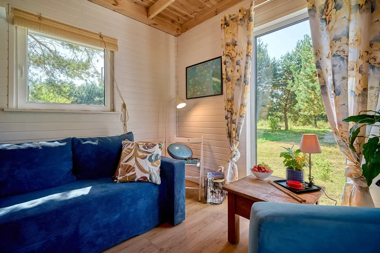 Na działce znajduje się budynek o pow. ok.35 m2 pełniący rolę domku letniskowego, całorocznego. Wybudowany w technologii szkieletowej (ok. 5 letni). W tym rekreacyjnym domku wyodrębniono salon, gabinet/pokój dziecięcy oraz łazienkę z wc. Do domku przylegają 2 wiaty o łącznej pow. ok 30 m2. To idealne miejsce na rozwój przedsiębiorczości, stworzenie małego warsztatu lub dodatkowa przestrzeń do wypoczynku.
